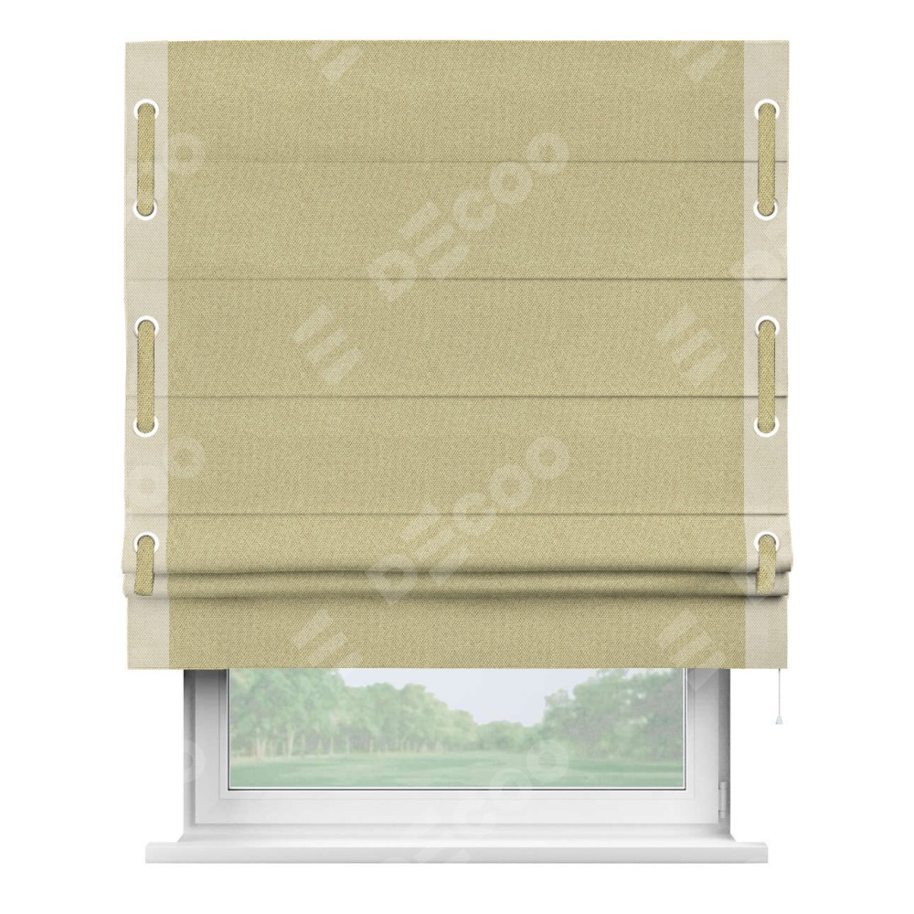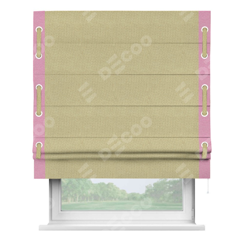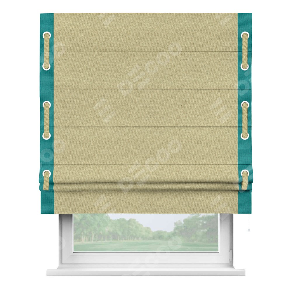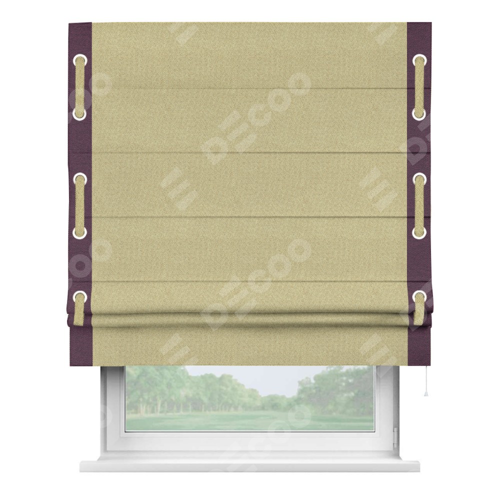 Римская штора «Кортин» с кантом Стрим Дуо (люверсы с пояском), для проема, ткань лён димаут, песочный