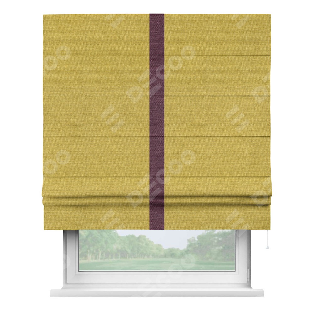 Римская штора «Кортин» с кантом Хайвэй, для проема, ткань лён светло-салатовый