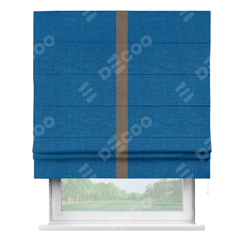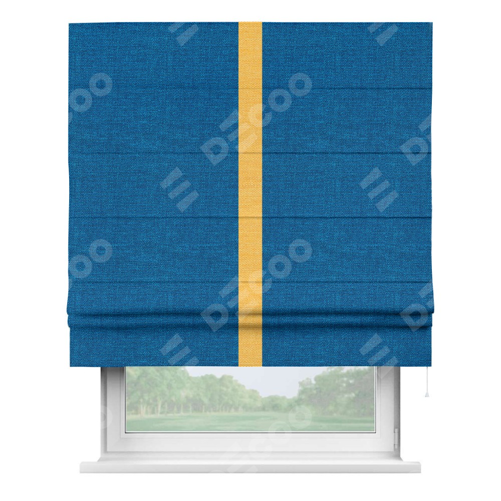 Римская штора «Кортин» с кантом Хайвэй, для проема, ткань лён синий