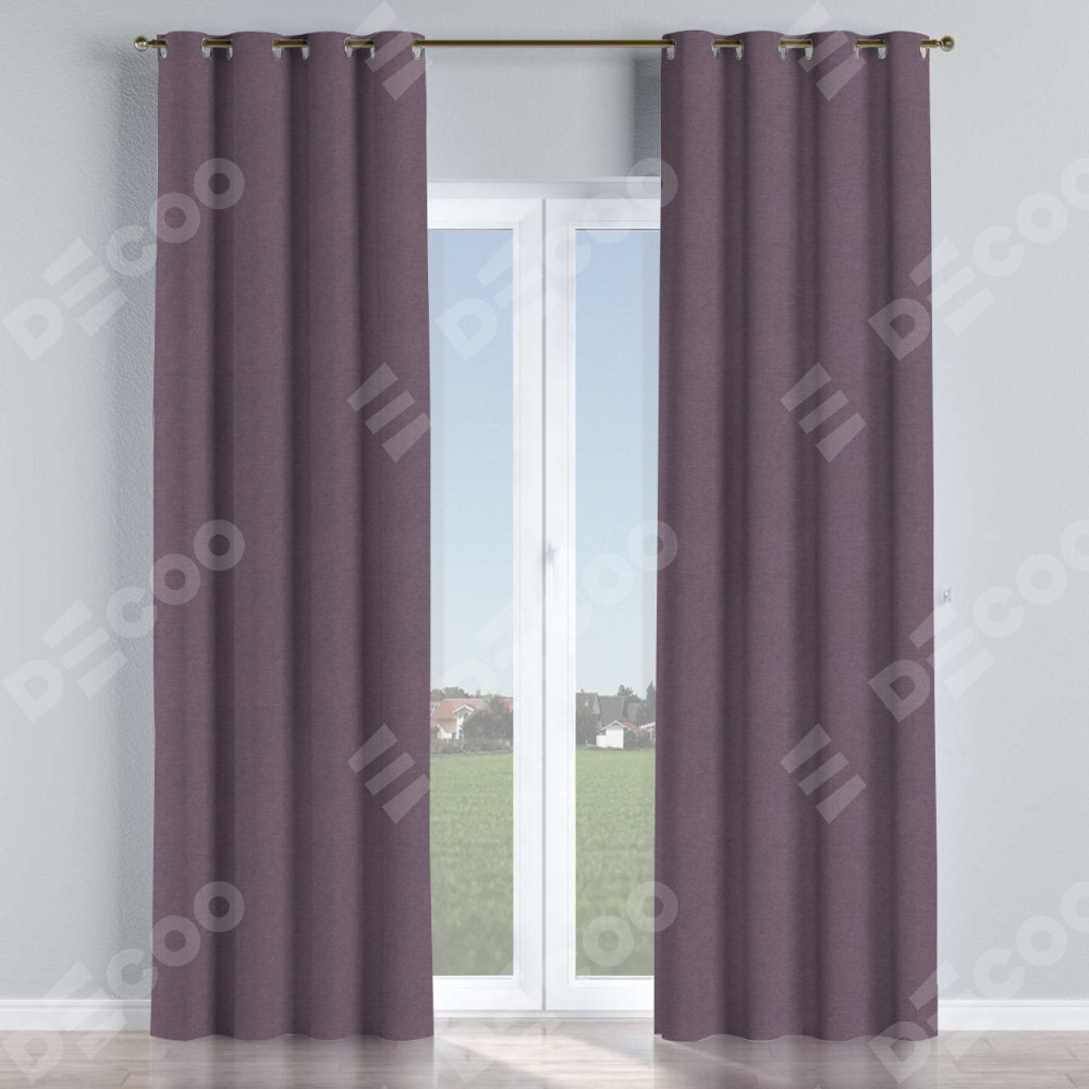 Комплект прямых штор, от производителя «Cortin», пошиты из ткани лён димаут светло-фиолетовый, артикул ткани 83034. Данная модель пошита на люверсах, комплектуется на выбор круглым карнизом и подходит для монтажа на стену или потолок. Прямые шторы на люверсах шьются по стандарту с коэффициентом 1/2 (на 100 см. ширины проёма 200 см. ширины ткани), отличительным преимуществом данной модели является простой способ монтажа. Достаточно повесить ее на трубу и штора готова!