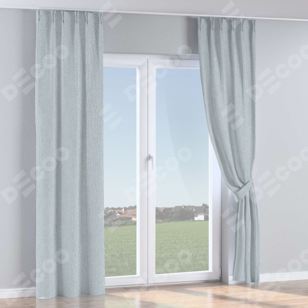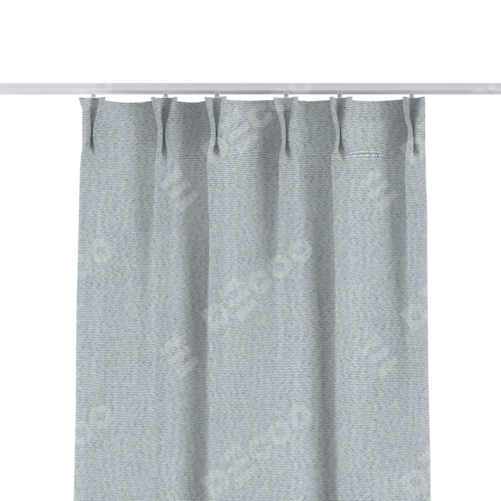 Комплект прямых штор, от производителя «Cortin», пошиты из ткани лён димаут серый, артикул ткани F3. С изнаночной стороны в верхней части штор пристрачивается шторная лента с декоративными складками «Кустик». Для создания элегантных складок прямые шторы шьются по стандарту с коэффициентом 1:2 (на 100 см. ширины проёма 200 см. ширины ткани).
