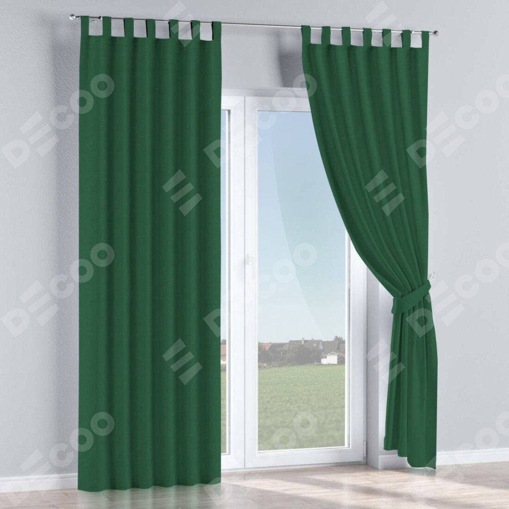 Комплект прямых штор, от производителя «Cortin», пошиты из ткани лён димаут тёмно-зелёный, артикул ткани 16246. Данная модель пошита на петлях, комплектуется на выбор круглым карнизом и подходит для монтажа на стену или потолок. Прямые шторы на петлях шьются по стандарту с коэффициентом 1/2 (на 100 см. ширины проёма 200 см. ширины ткани), отличительным преимуществом данной модели является простой способ монтажа. Достаточно повесить ее на трубу и штора готова!