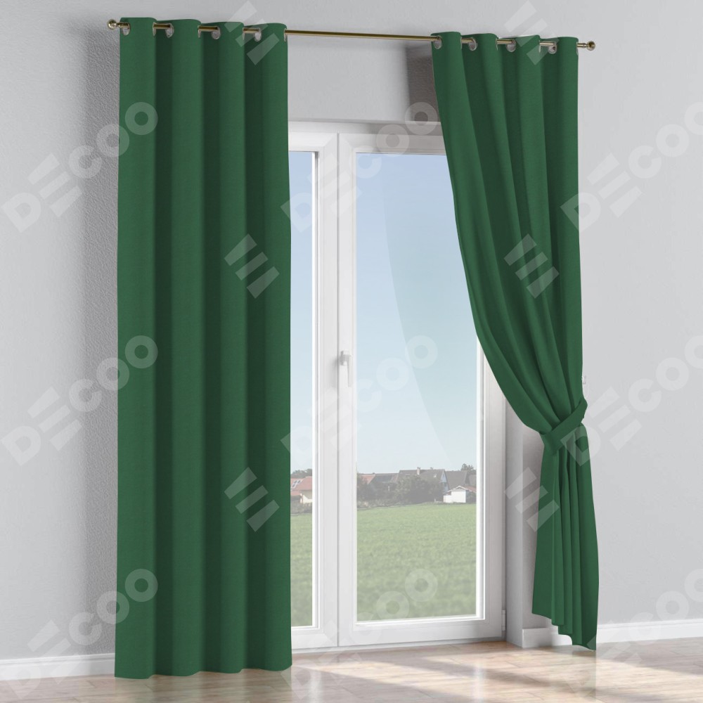 Комплект прямых штор, от производителя «Cortin», пошиты из ткани лён димаут тёмно-зелёный, артикул ткани 16246. Данная модель пошита на люверсах, комплектуется на выбор круглым карнизом и подходит для монтажа на стену или потолок. Прямые шторы на люверсах шьются по стандарту с коэффициентом 1/2 (на 100 см. ширины проёма 200 см. ширины ткани), отличительным преимуществом данной модели является простой способ монтажа. Достаточно повесить ее на трубу и штора готова!