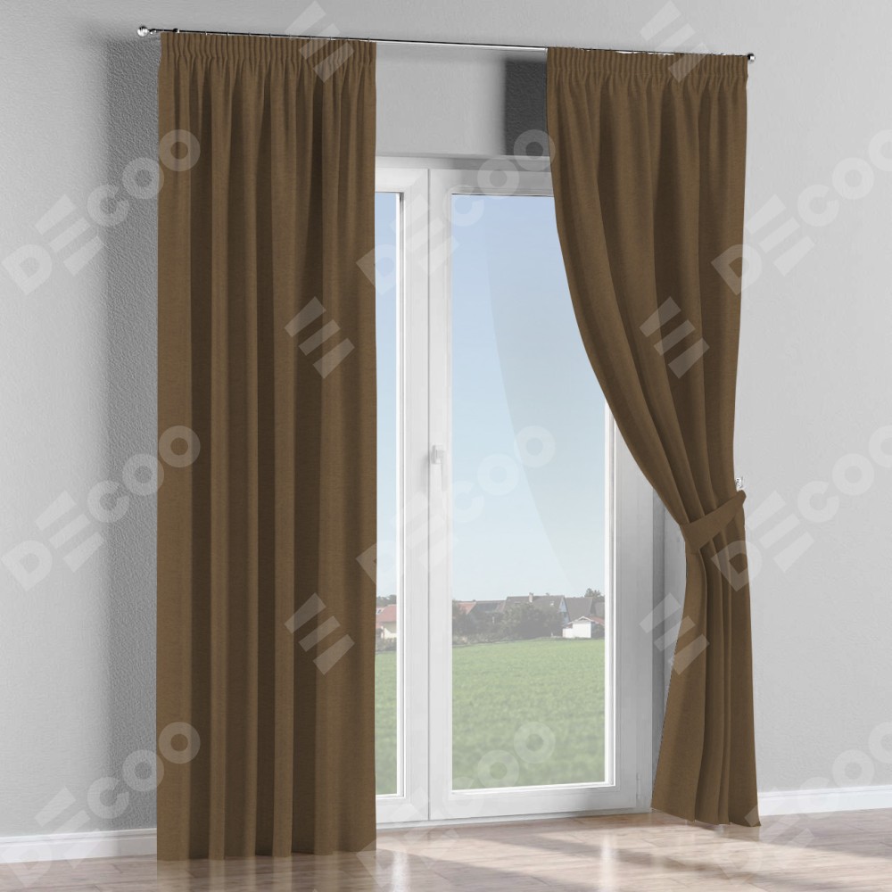 Комплект прямых штор, от производителя «Cortin», пошиты из ткани лён димаут тёмно-коричневый, артикул ткани 83030. С изнаночной стороны в верхней части штор пристрачивается шторная лента с декоративными складками «Карандаш». Для создания элегантных складок прямые шторы шьются по стандарту с коэффициентом 1:2 (на 100 см. ширины проёма 200 см. ширины ткани).