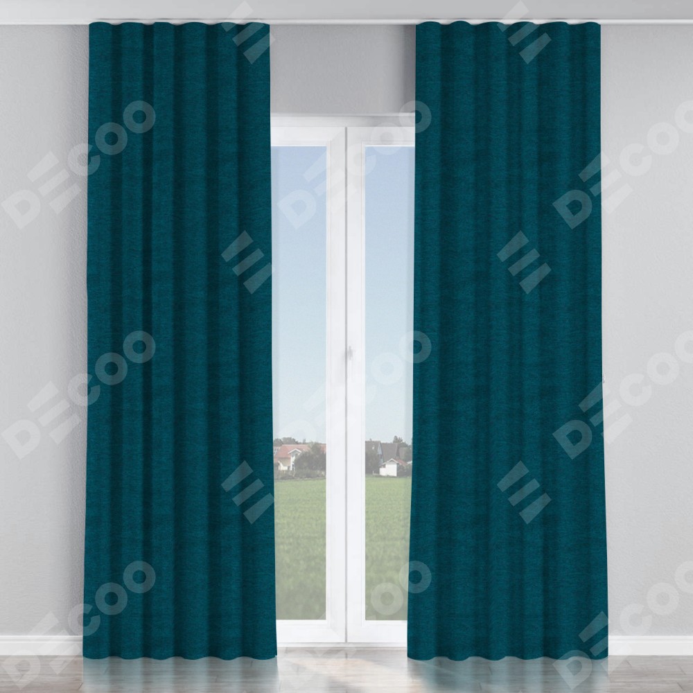 Комплект прямых штор, от производителя «Cortin», пошиты из ткани твид блэкаут глубокий синий, артикул ткани 21590. С изнаночной стороны в верхней части штор пристрачивается шторная лента с декоративными складками «Волна». Для создания элегантных складок прямые шторы шьются по стандарту с коэффициентом 1:2 (на 100 см. ширины проёма 200 см. ширины ткани).