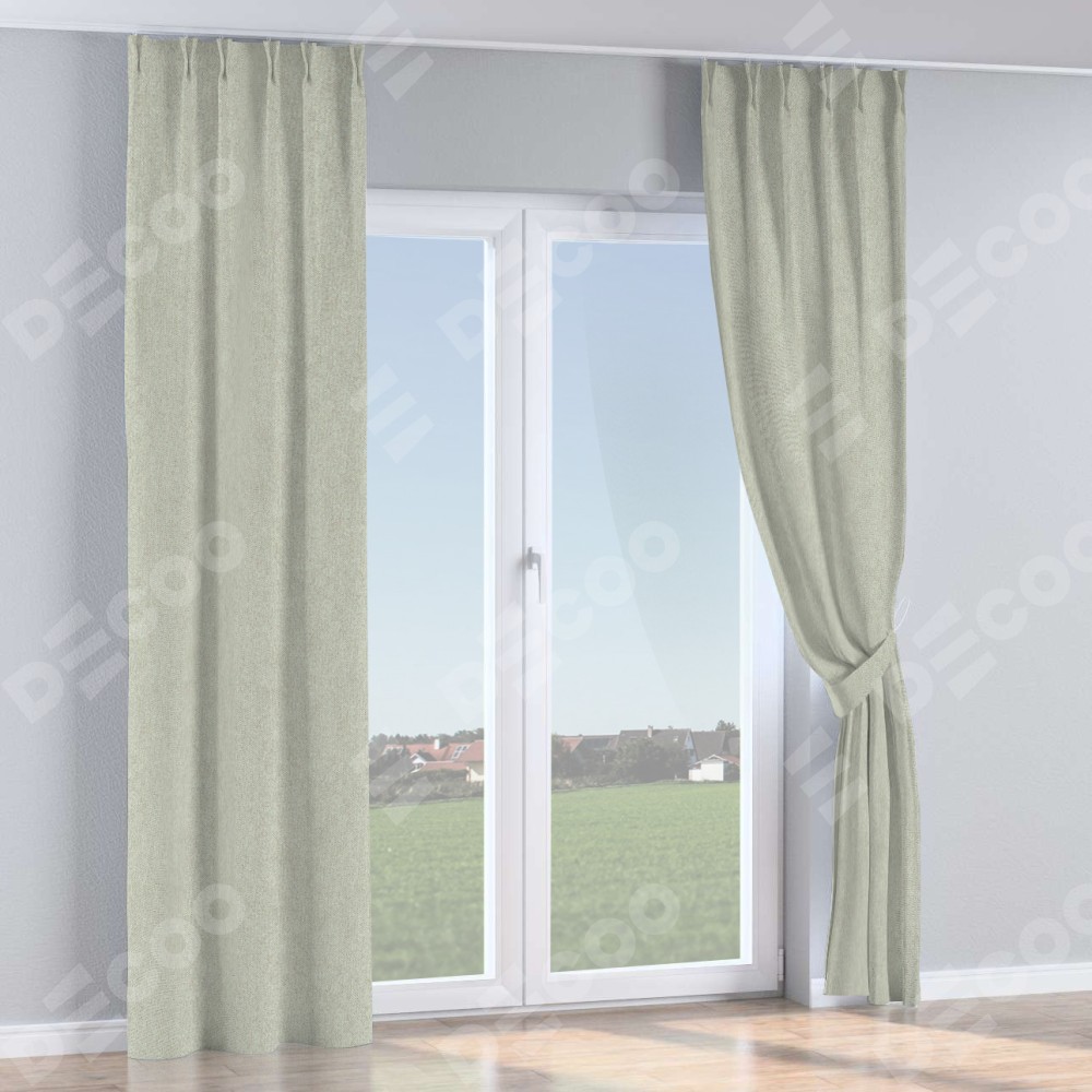 Комплект прямых штор, от производителя «Cortin», пошиты из ткани твид блэкаут коричнево-серый, артикул ткани 21574. С изнаночной стороны в верхней части штор пристрачивается шторная лента с декоративными складками «Кустик». Для создания элегантных складок прямые шторы шьются по стандарту с коэффициентом 1:2 (на 100 см. ширины проёма 200 см. ширины ткани).