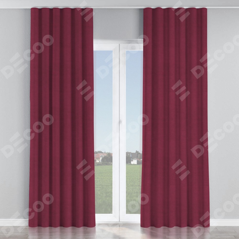 Комплект прямых штор, от производителя «Cortin», пошиты из ткани вельвет бордовый, артикул ткани 85553. С изнаночной стороны в верхней части штор пристрачивается шторная лента с декоративными складками «Волна». Для создания элегантных складок прямые шторы шьются по стандарту с коэффициентом 1:2 (на 100 см. ширины проёма 200 см. ширины ткани).