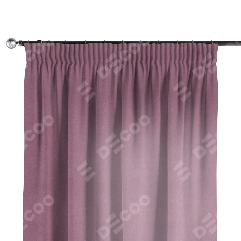Комплект прямых штор, от производителя «Cortin», пошиты из ткани вельвет лиловый, артикул ткани 17752. С изнаночной стороны в верхней части штор пристрачивается шторная лента с декоративными складками «Карандаш». Для создания элегантных складок прямые шторы шьются по стандарту с коэффициентом 1:2 (на 100 см. ширины проёма 200 см. ширины ткани).