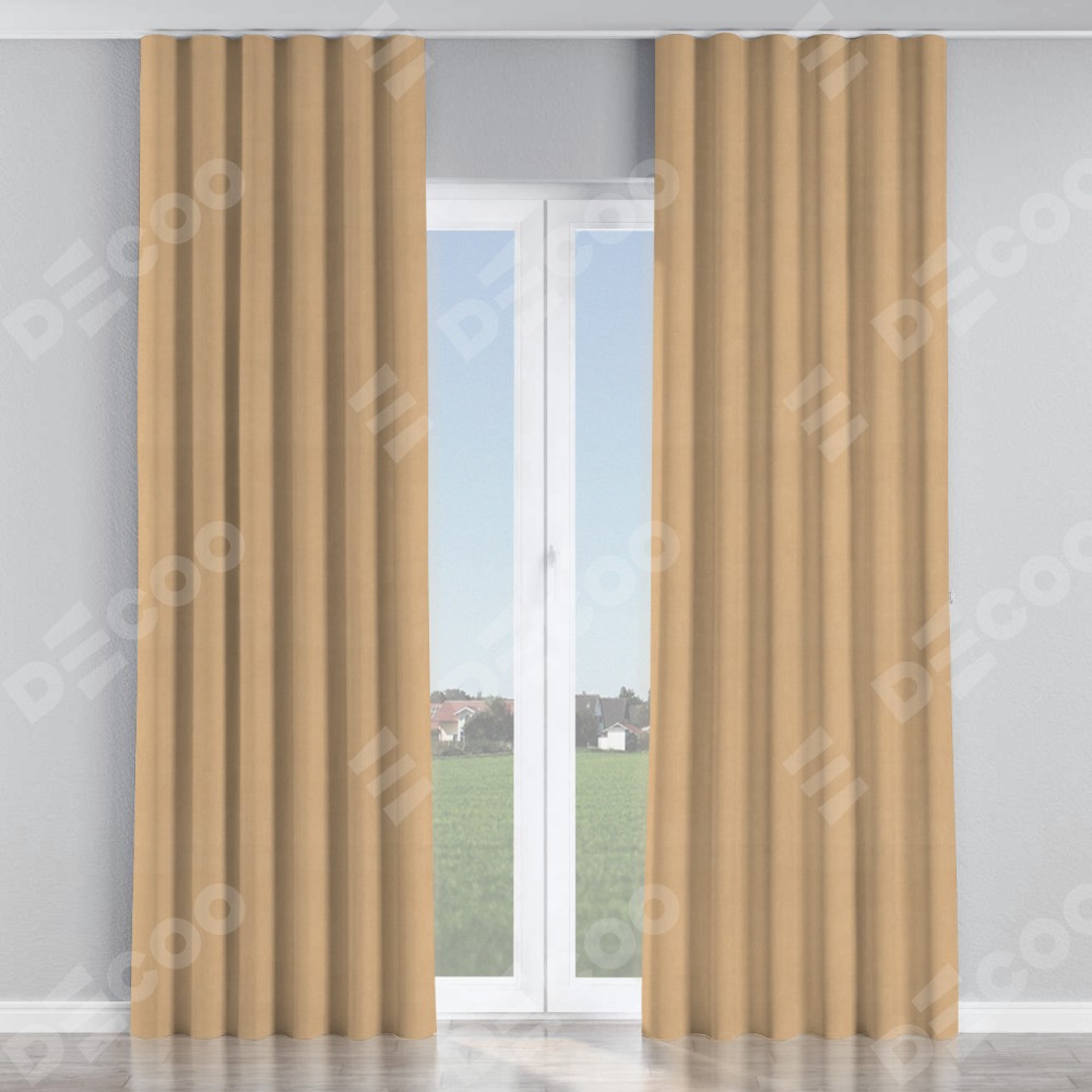 Комплект прямых штор, от производителя «Cortin», пошиты из ткани вельвет песочный, артикул ткани 17740. С изнаночной стороны в верхней части штор пристрачивается шторная лента с декоративными складками «Волна». Для создания элегантных складок прямые шторы шьются по стандарту с коэффициентом 1:2 (на 100 см. ширины проёма 200 см. ширины ткани).