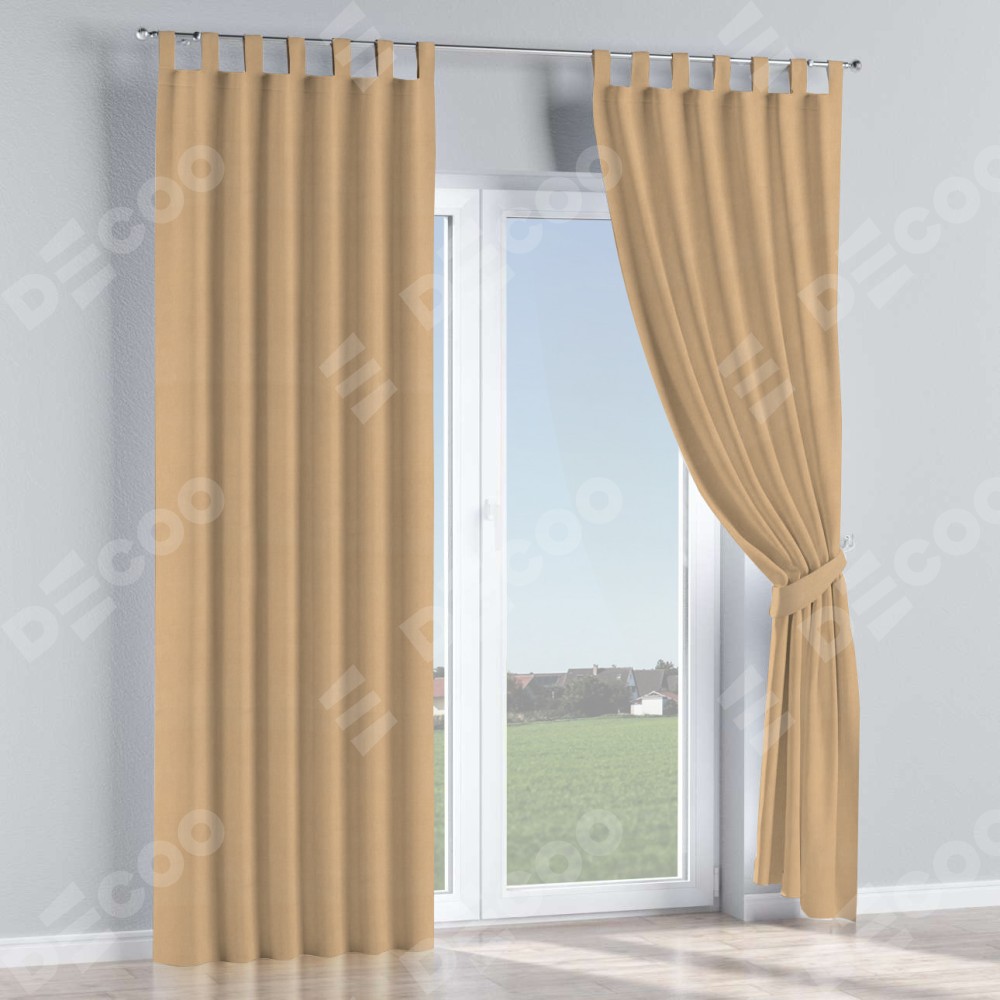 Комплект прямых штор, от производителя «Cortin», пошиты из ткани вельвет песочный, артикул ткани 17740. Данная модель пошита на петлях, комплектуется на выбор круглым карнизом и подходит для монтажа на стену или потолок. Прямые шторы на петлях шьются по стандарту с коэффициентом 1/2 (на 100 см. ширины проёма 200 см. ширины ткани), отличительным преимуществом данной модели является простой способ монтажа. Достаточно повесить ее на трубу и штора готова!
