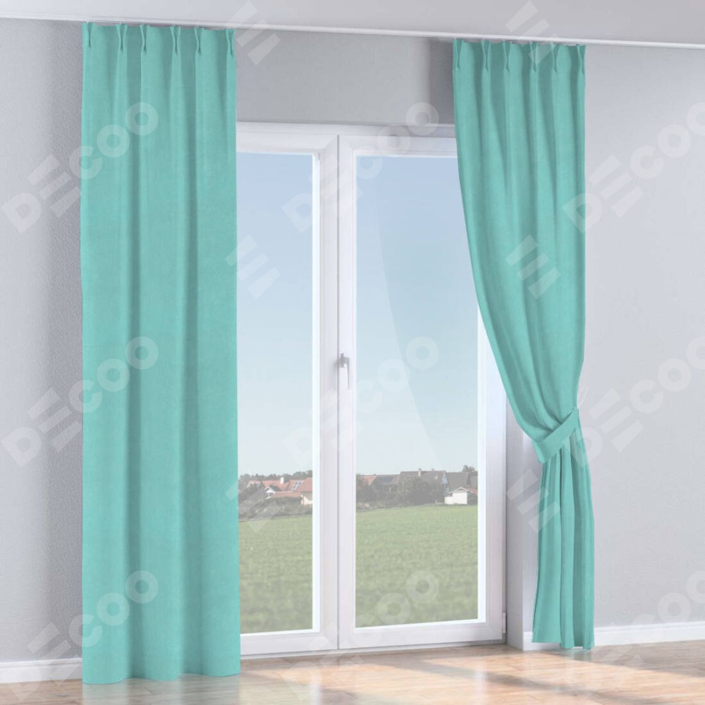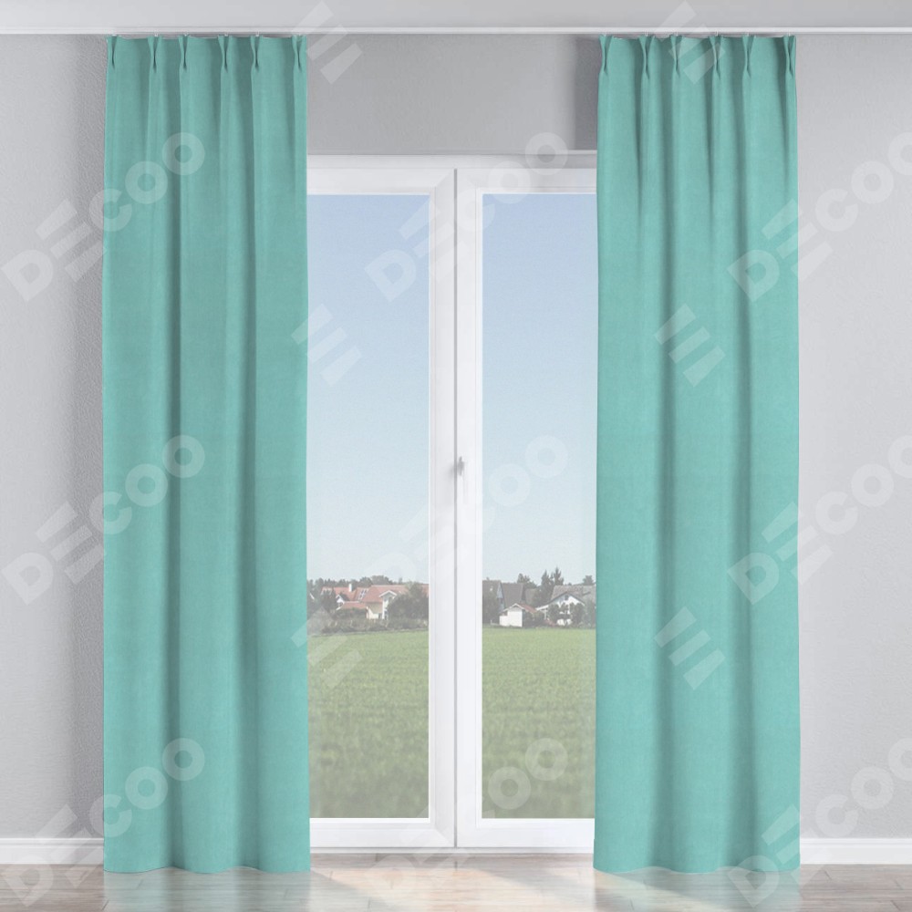 Комплект прямых штор, от производителя «Cortin», пошиты из ткани вельвет тиффани, артикул ткани 17765. С изнаночной стороны в верхней части штор пристрачивается шторная лента с декоративными складками «Кустик». Для создания элегантных складок прямые шторы шьются по стандарту с коэффициентом 1:2 (на 100 см. ширины проёма 200 см. ширины ткани).