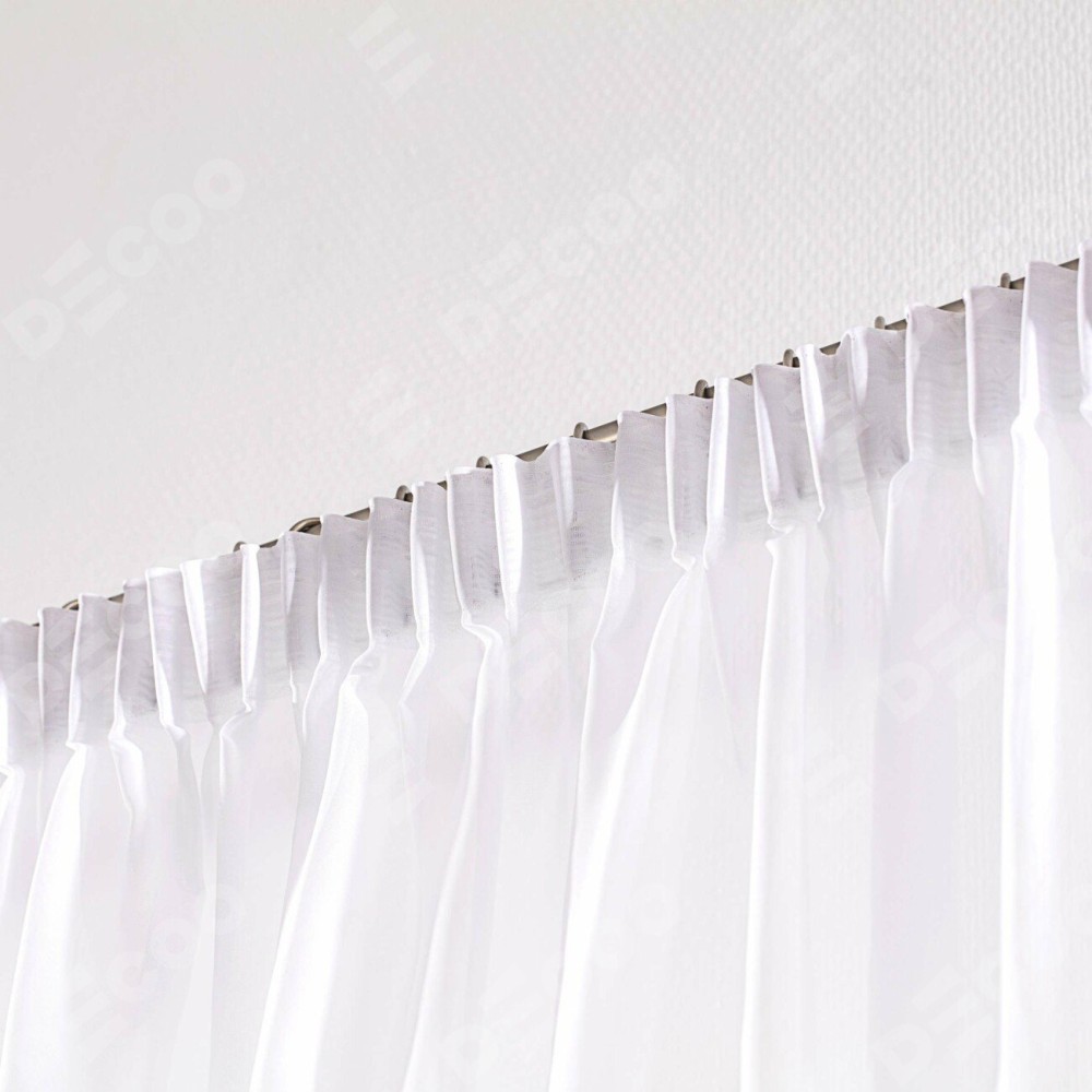Комплект прямых штор, от производителя «Cortin», пошиты из ткани тюль белый, артикул ткани V-01. С изнаночной стороны в верхней части штор пристрачивается шторная лента с декоративными складками «Карандаш». Для создания элегантных складок прямые шторы шьются по стандарту с коэффициентом 1:2 (на 100 см. ширины проёма 200 см. ширины ткани).