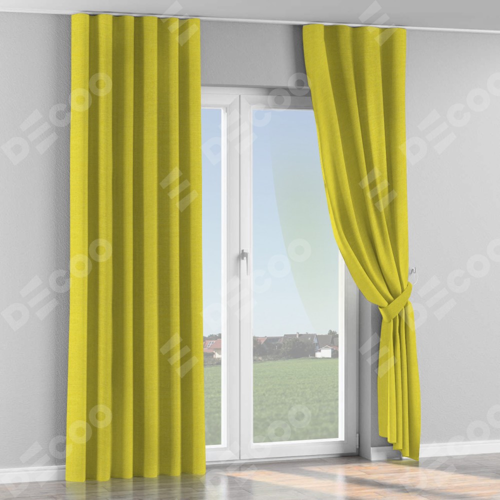 Комплект прямых штор, от производителя «Cortin», пошиты из ткани лён салатовый, артикул ткани 53437. С изнаночной стороны в верхней части штор пристрачивается шторная лента с декоративными складками «Волна». Для создания элегантных складок прямые шторы шьются по стандарту с коэффициентом 1:2 (на 100 см. ширины проёма 200 см. ширины ткани).
