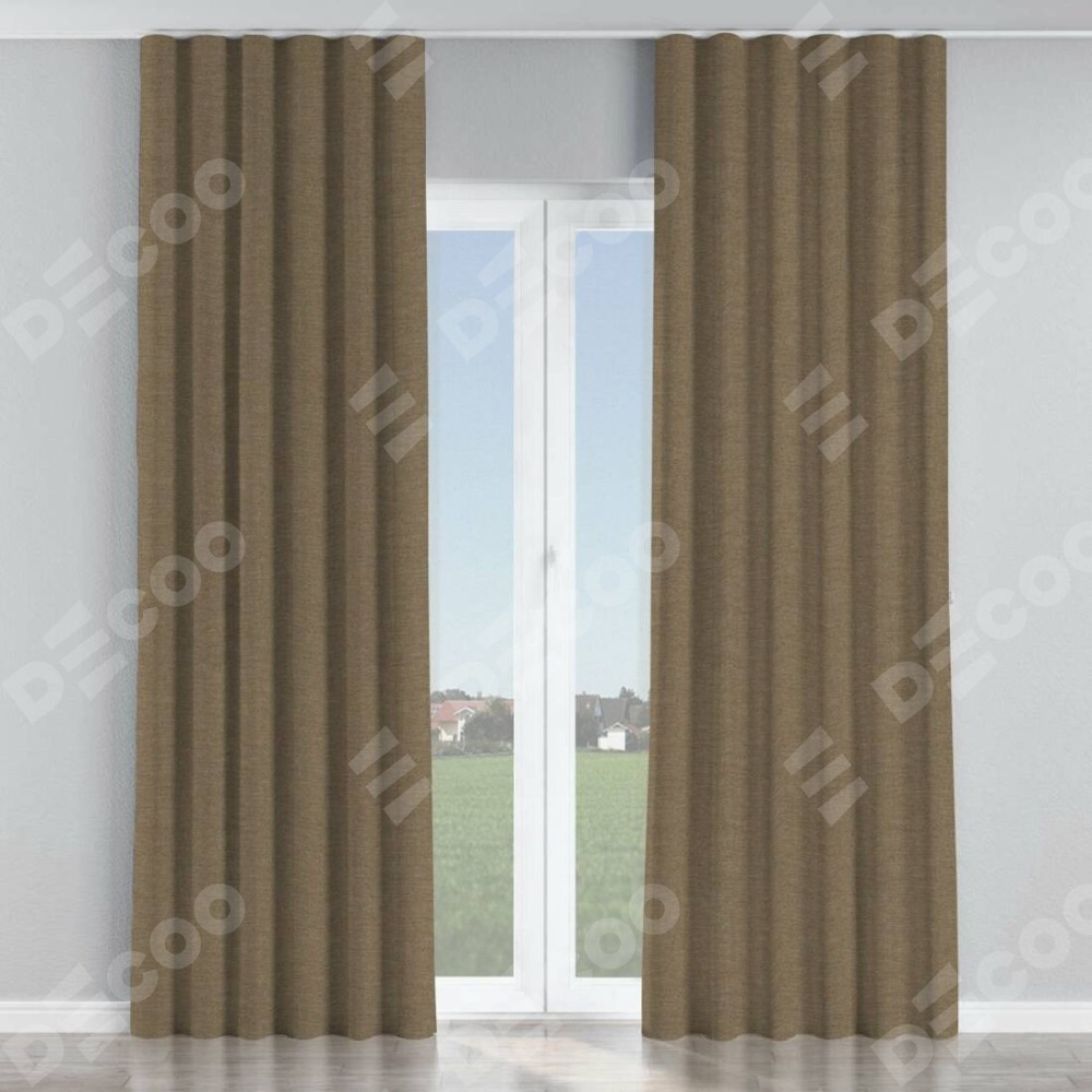 Комплект прямых штор, от производителя «Cortin», пошиты из ткани лён светло-коричневый, артикул ткани 53434. С изнаночной стороны в верхней части штор пристрачивается шторная лента с декоративными складками «Волна». Для создания элегантных складок прямые шторы шьются по стандарту с коэффициентом 1:2 (на 100 см. ширины проёма 200 см. ширины ткани).