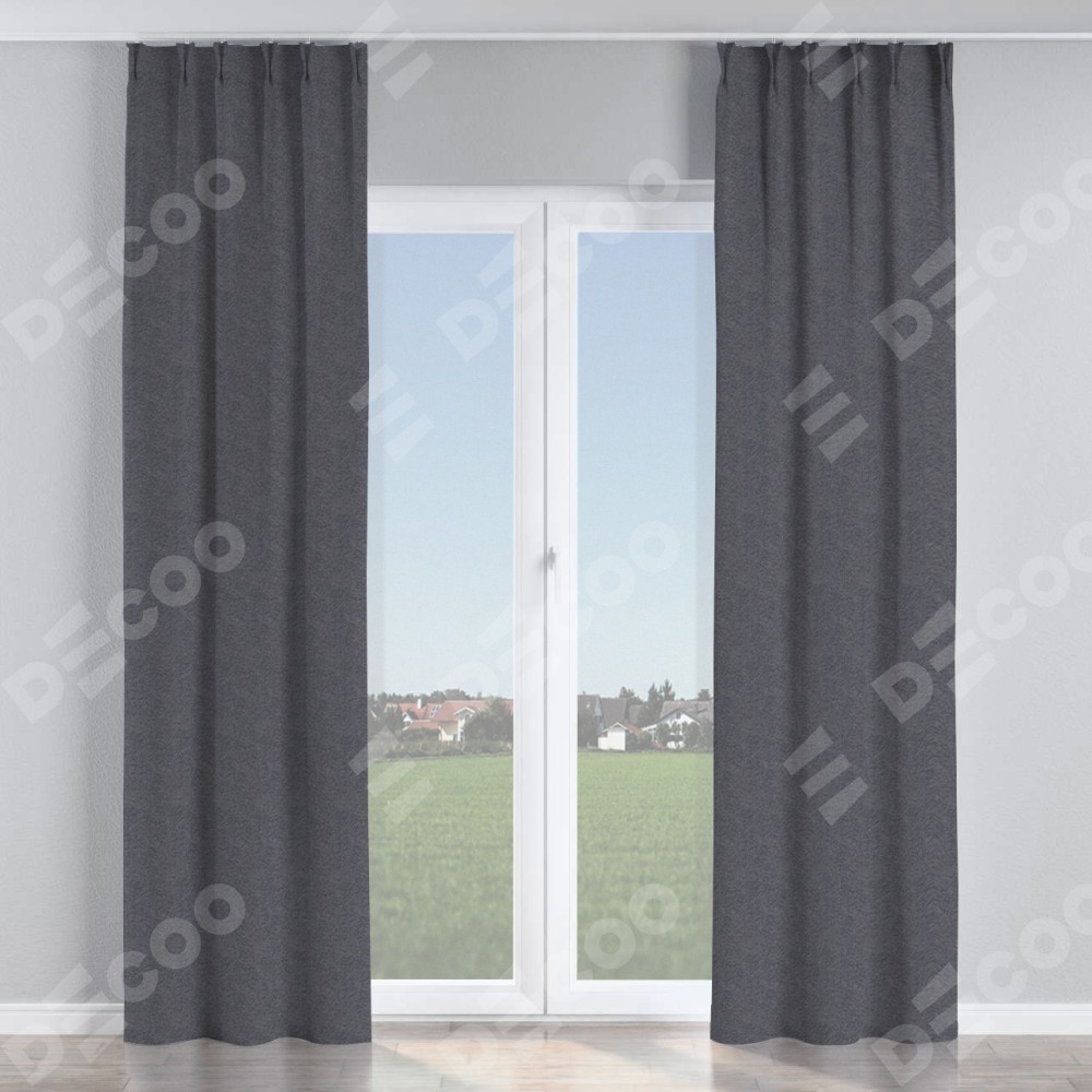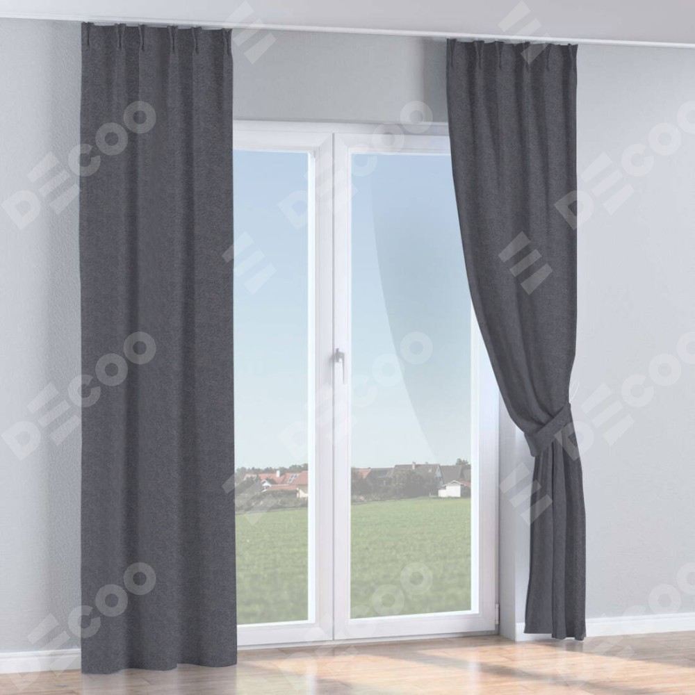 Комплект прямых штор, от производителя «Cortin», пошиты из ткани софт однотонный графит, артикул ткани 19316. С изнаночной стороны в верхней части штор пристрачивается шторная лента с декоративными складками «Кустик». Для создания элегантных складок прямые шторы шьются по стандарту с коэффициентом 1:2 (на 100 см. ширины проёма 200 см. ширины ткани).