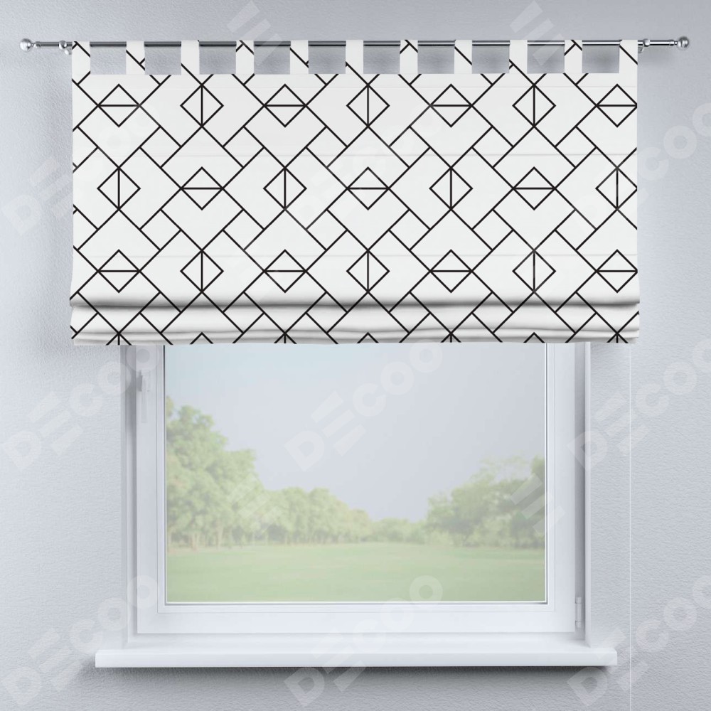 Римская штора производителя «Cortin», используется для проёма, пошита из ткани блэкаут с нанесением сублимационной печати «Геометрический орнамент». Данная модель пошита на петлях, комплектуется на выбор круглым карнизом и подходит для монтажа на стену. Римская штора на петлях имеет простую систему регулировки высоты, отличительным преимуществом данной модели является простой способ монтажа. Достаточно повесить ее на трубу и штора готова!