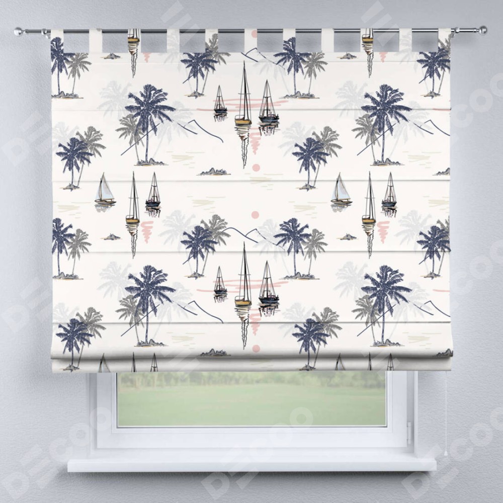 Римская штора производителя «Cortin», используется для проёма, пошита из ткани блэкаут с нанесением сублимационной печати «Морское путешествие». Данная модель пошита на петлях, комплектуется на выбор круглым карнизом и подходит для монтажа на стену. Римская штора на петлях имеет простую систему регулировки высоты, отличительным преимуществом данной модели является простой способ монтажа. Достаточно повесить ее на трубу и штора готова!