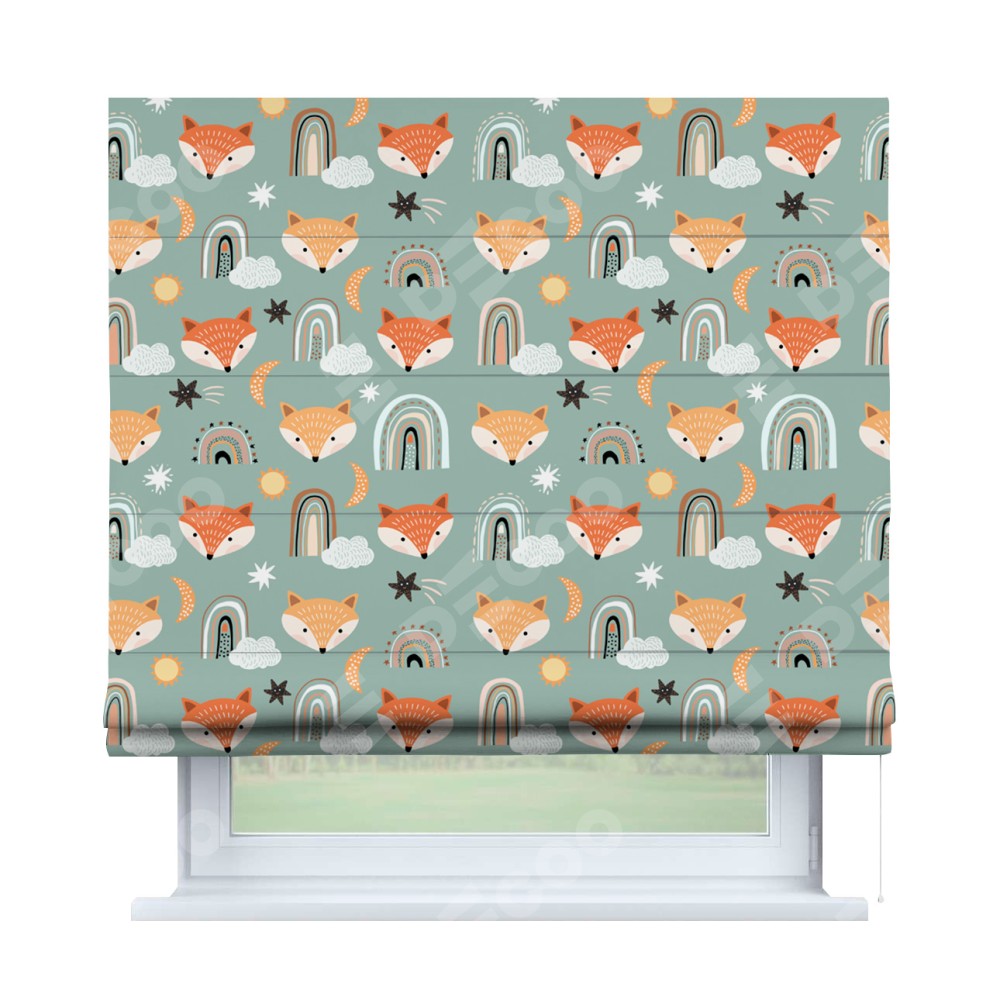 Римская штора производителя «Cortin», используется для проёма, пошита из ткани блэкаут с нанесением сублимационной печати «Озорные лисички». Имеет универсальный механизм и подходит для монтажа: на потолок, на стену и в нишу.