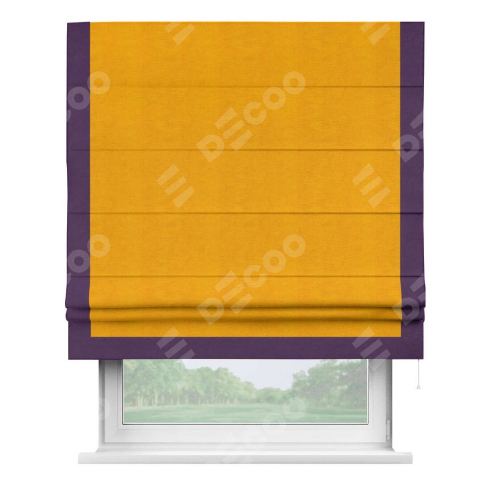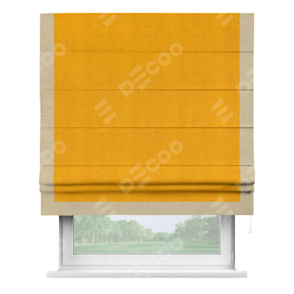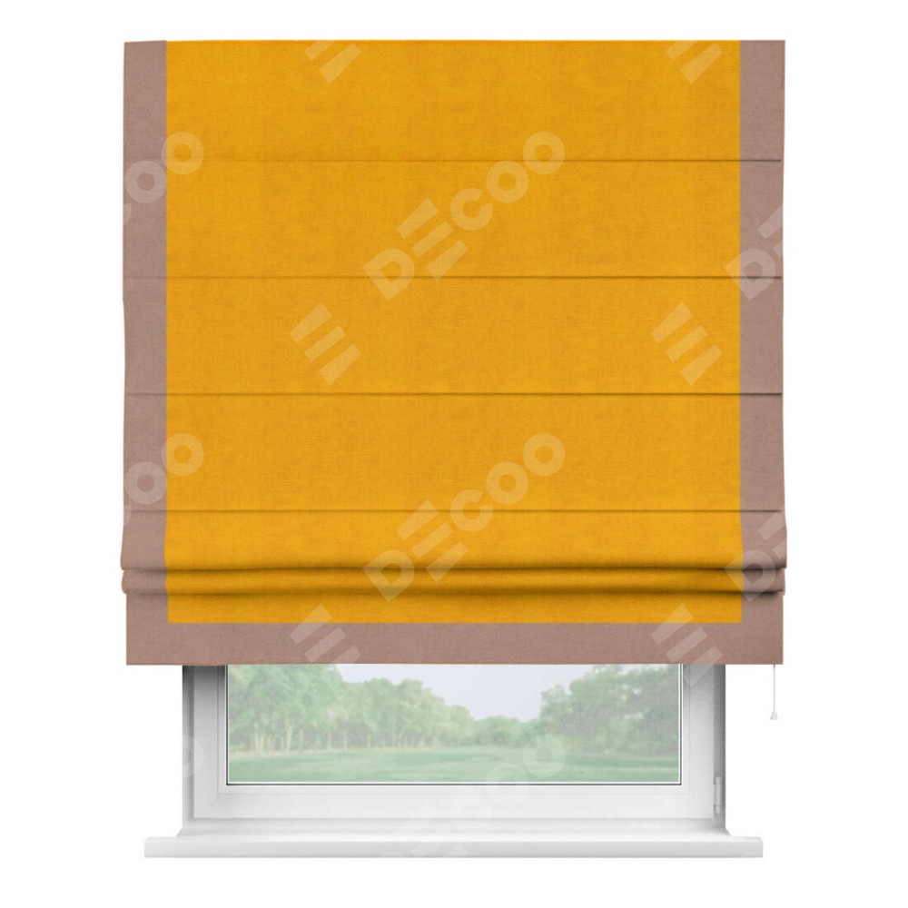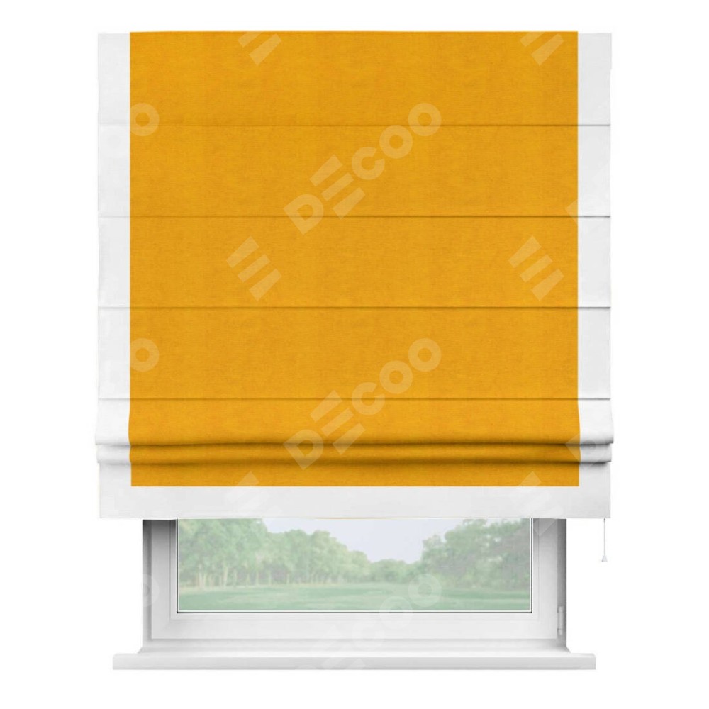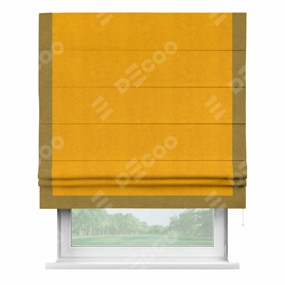 Римская штора «Кортин» с кантом Виктория, для проема, ткань вельвет желтый