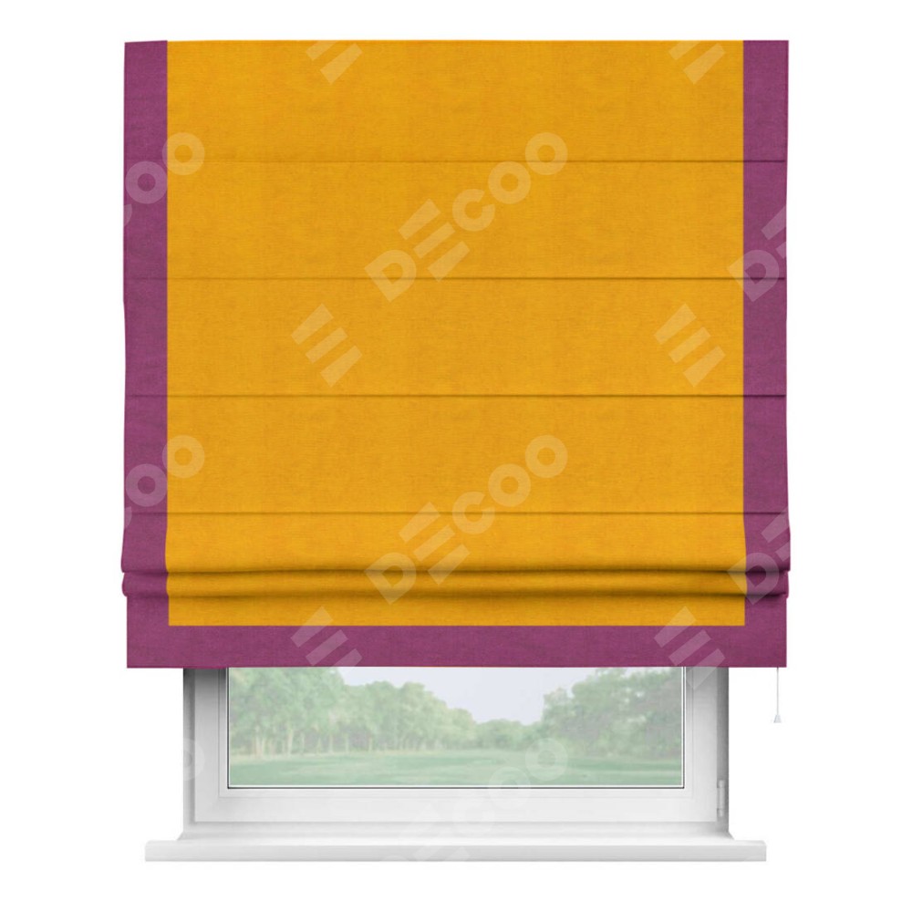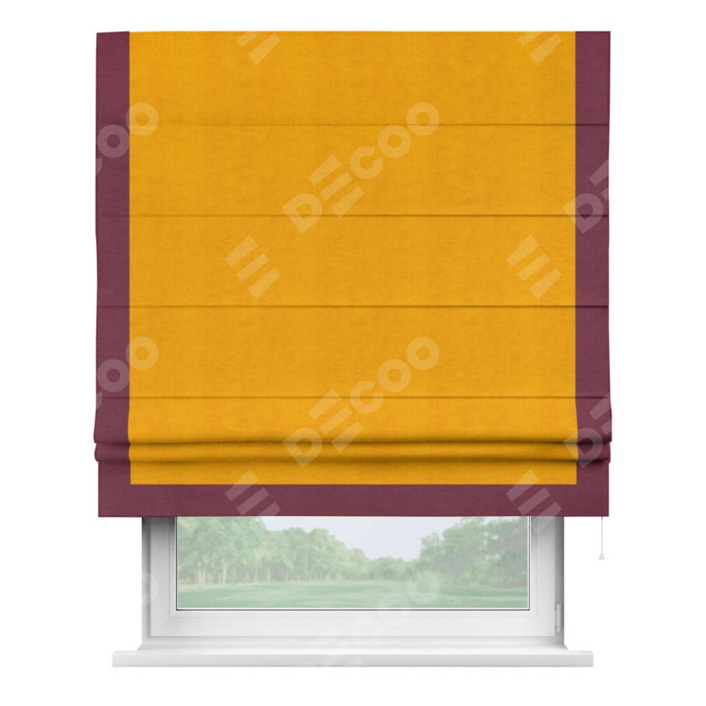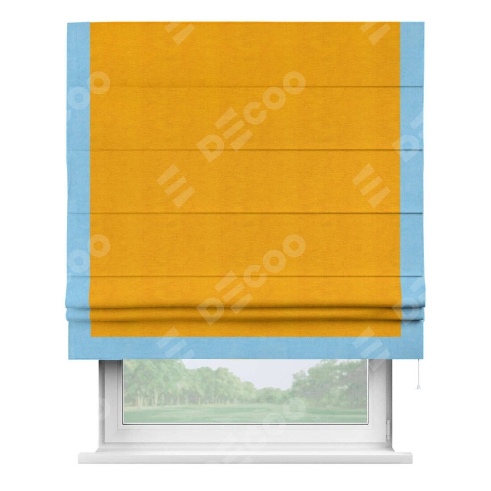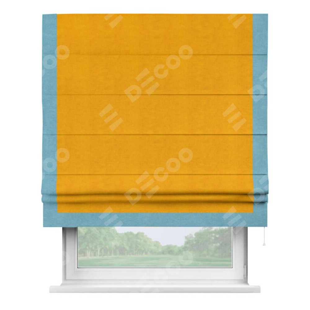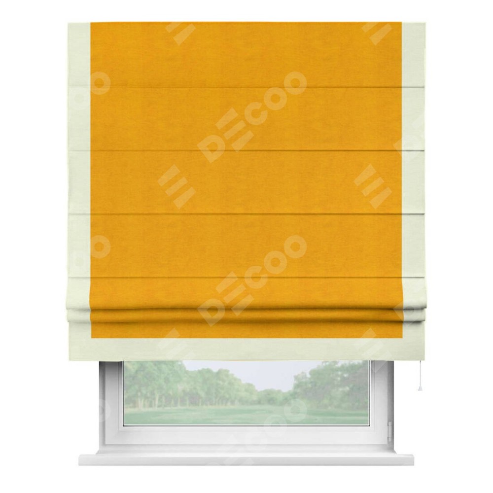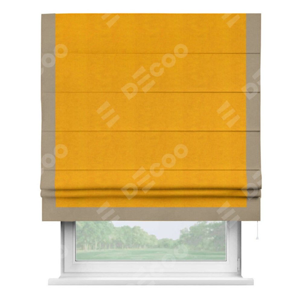 Римская штора «Кортин» с кантом Виктория, для проема, ткань вельвет желтый