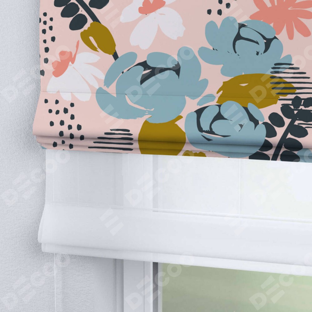 Римская штора день-ночь производителя «Cortin», используется для проёма, пошита из двух полотен, с лицевой блэкаут с нанесением сублимационной печати «Дивные цветы», вторая ткань тюль (по стандарту комплектуется тюль белого цвета артикул V-01). Имеет универсальный механизм и подходит для монтажа: на потолок, на стену и в нишу.