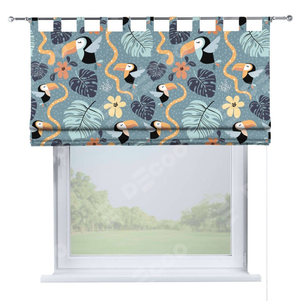 Римская штора производителя «Cortin», используется для проёма, пошита из ткани блэкаут с нанесением сублимационной печати «Экзотические птицы». Данная модель пошита на петлях, комплектуется на выбор круглым карнизом и подходит для монтажа на стену. Римская штора на петлях имеет простую систему регулировки высоты, отличительным преимуществом данной модели является простой способ монтажа. Достаточно повесить ее на трубу и штора готова!