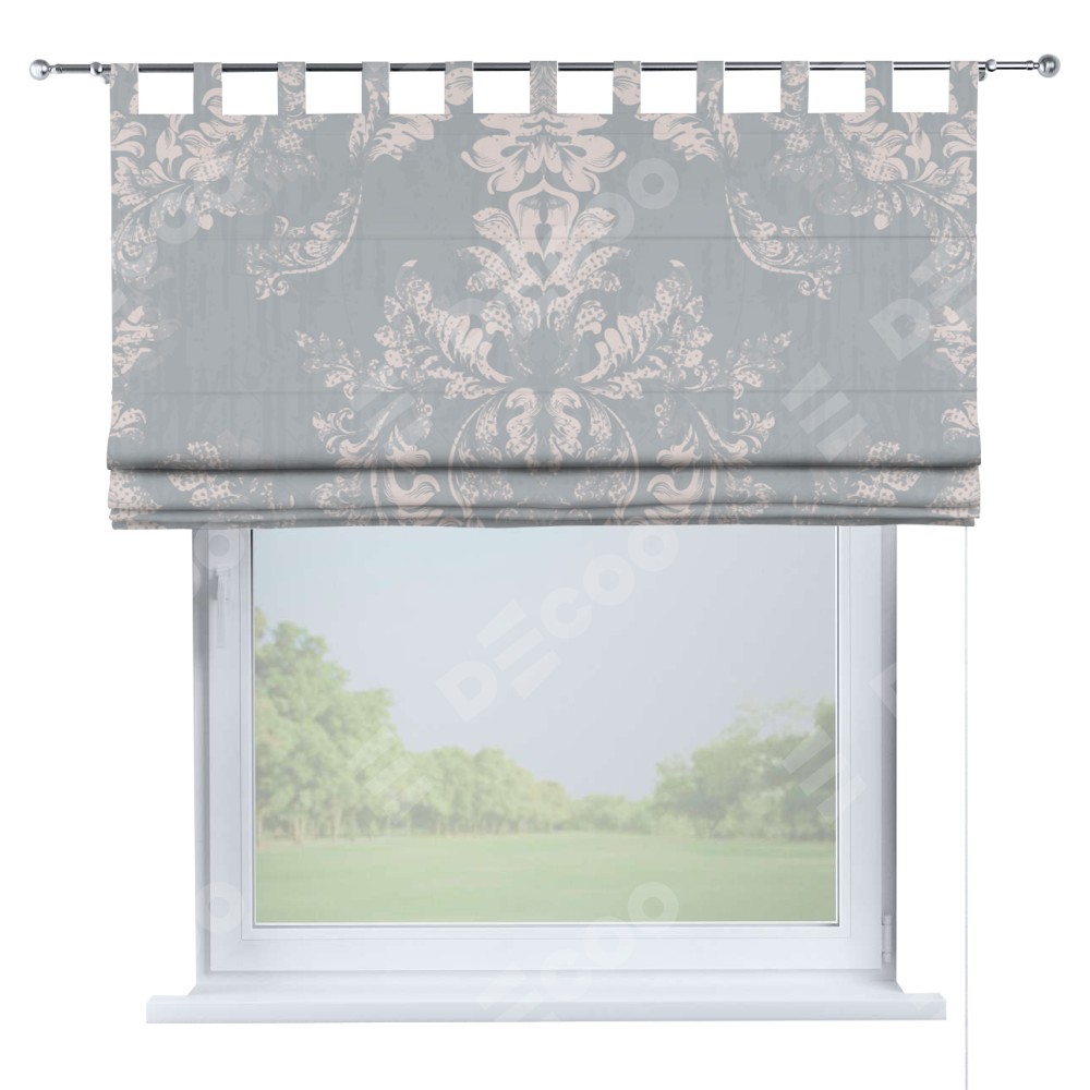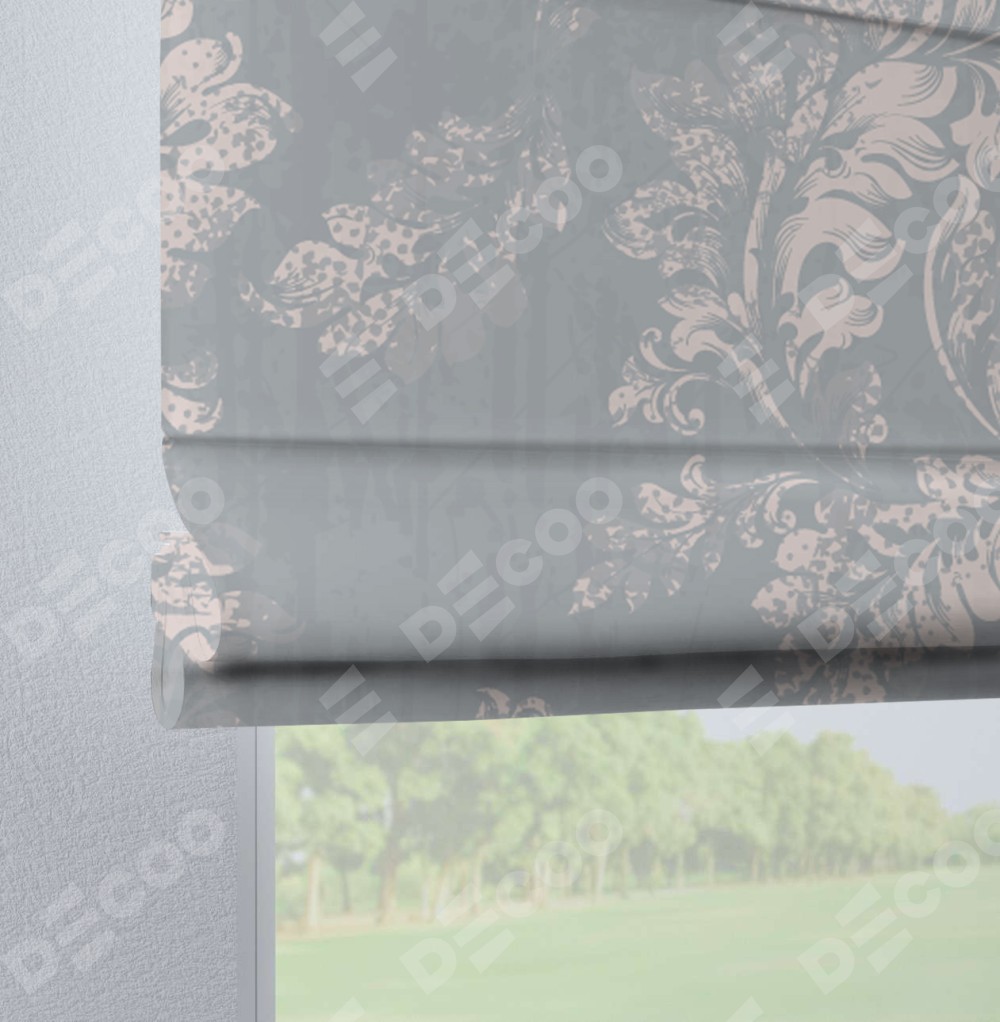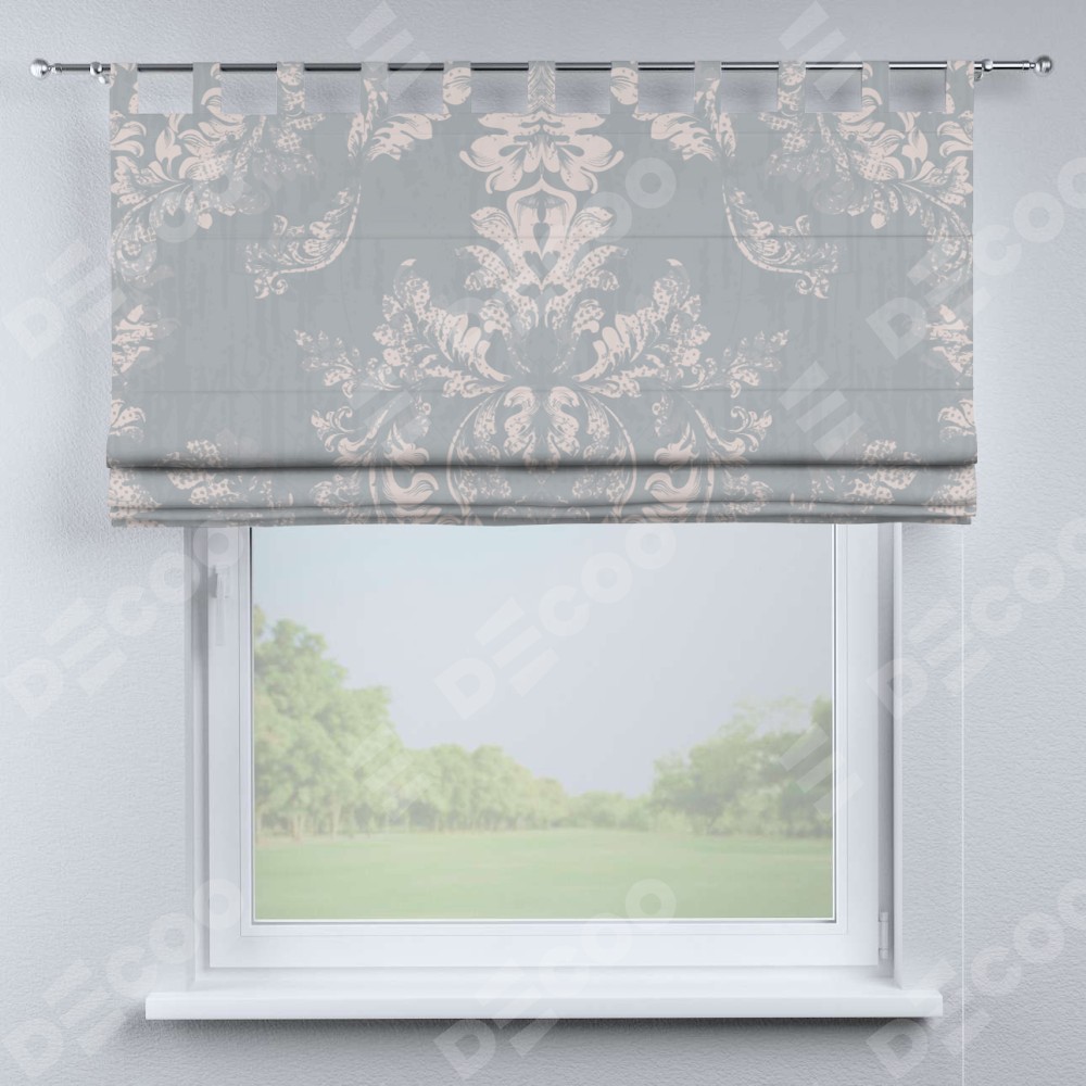 Римская штора производителя «Cortin», используется для проёма, пошита из ткани блэкаут с нанесением сублимационной печати «Винтажный узор серый». Данная модель пошита на петлях, комплектуется на выбор круглым карнизом и подходит для монтажа на стену. Римская штора на петлях имеет простую систему регулировки высоты, отличительным преимуществом данной модели является простой способ монтажа. Достаточно повесить ее на трубу и штора готова!