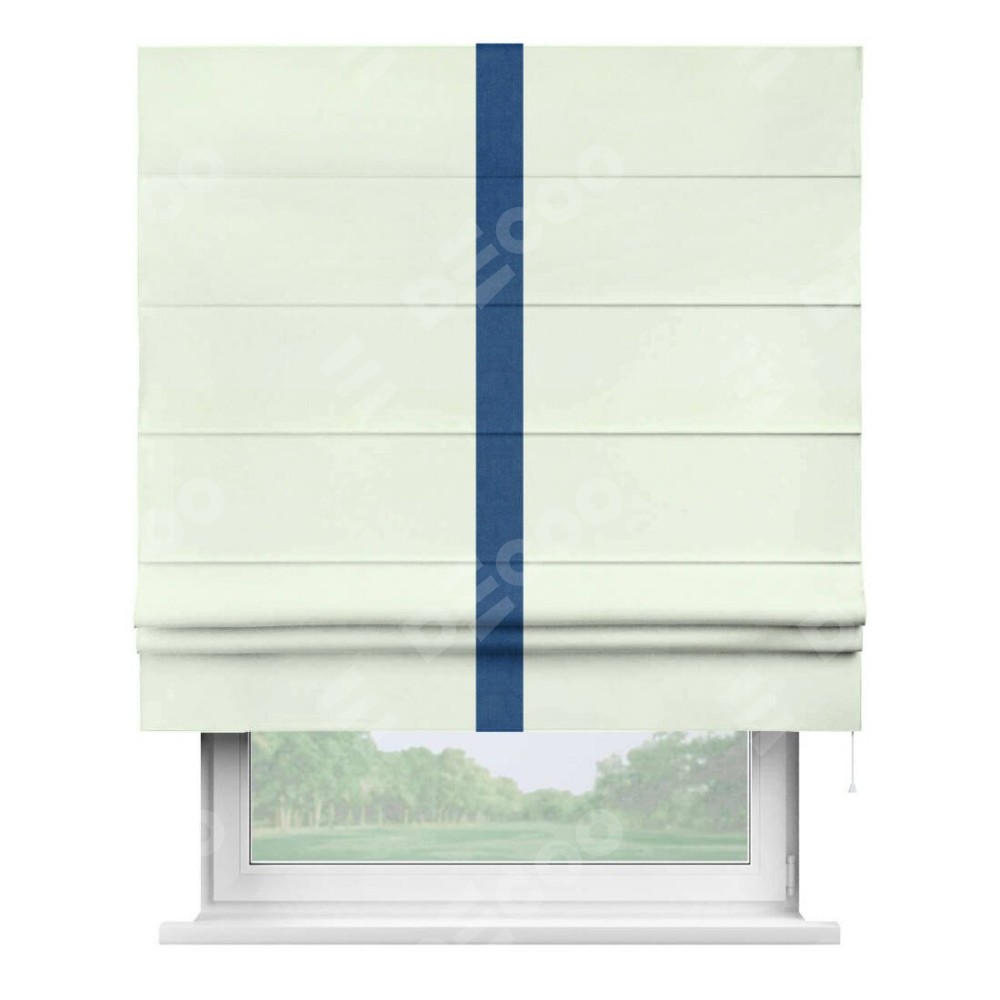 Римская штора производителя «Cortin», используется для проёма, пошита из ткани вельвет кремовый, артикул ткани 85524. Отделка шторы кантом «Хайвей», ткань для канта используется из вельвета разной расцветки на выбор. Имеет универсальный механизм и подходит для монтажа: на потолок, на стену и в нишу.
