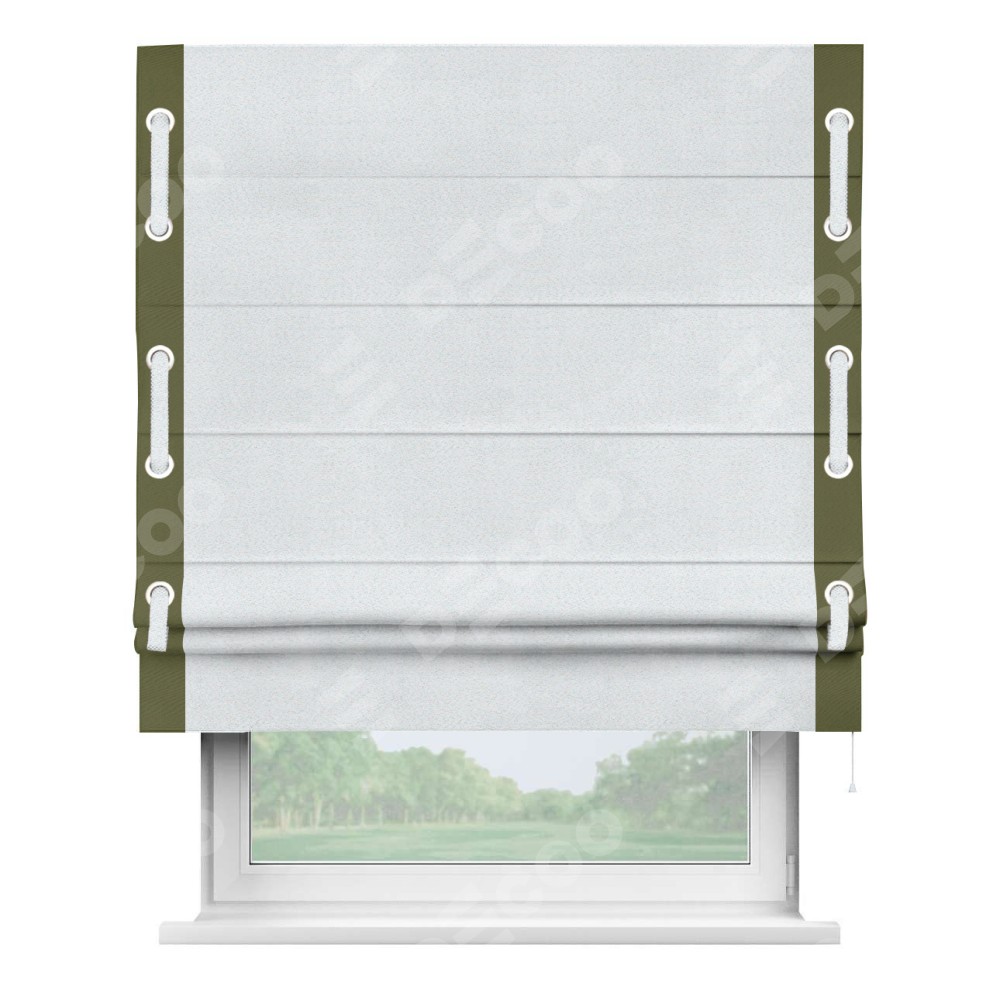 Римская штора «Кортин» с кантом Стрим Дуо (люверсы с пояском), для проема, ткань блэкаут однотонный дымчато-белый