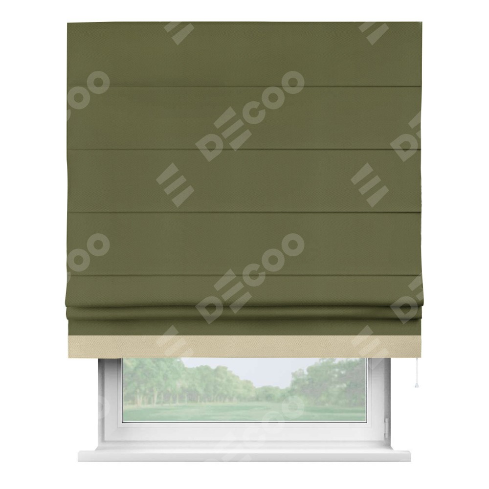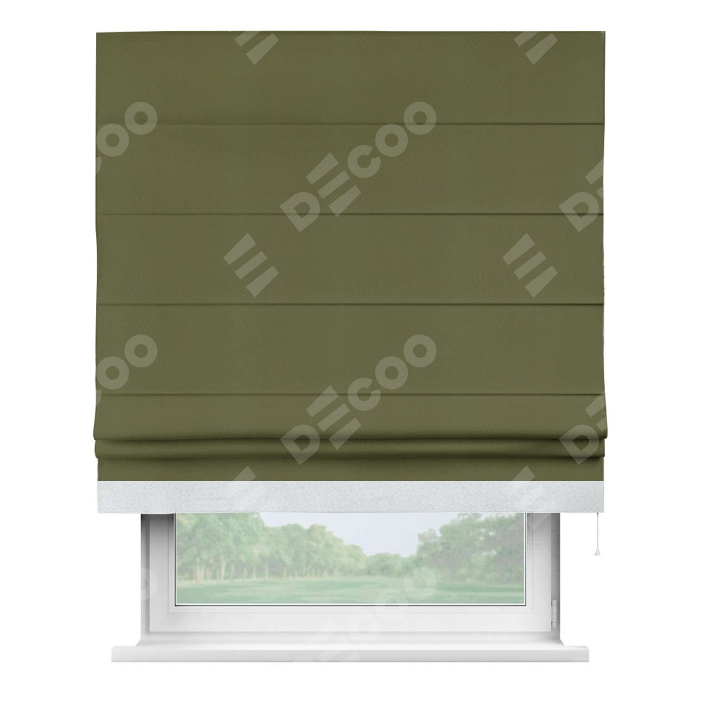 Римская штора «Кортин» с кантом Джестер, для проема, ткань блэкаут однотонный зелёный