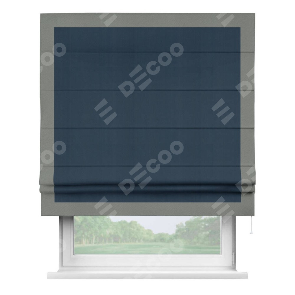Римская штора производителя «Cortin», используется для проёма, пошита из ткани блэкаут однотонный синий, артикул ткани 29327. Отделка шторы кантом «Чесс», ткань для канта используется из блэкаута однотонного разной расцветки на выбор. Имеет универсальный механизм и подходит для монтажа: на потолок, на стену и в нишу.