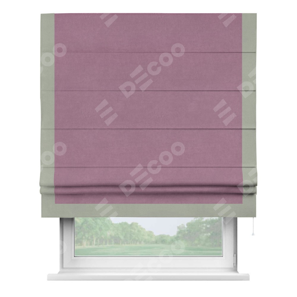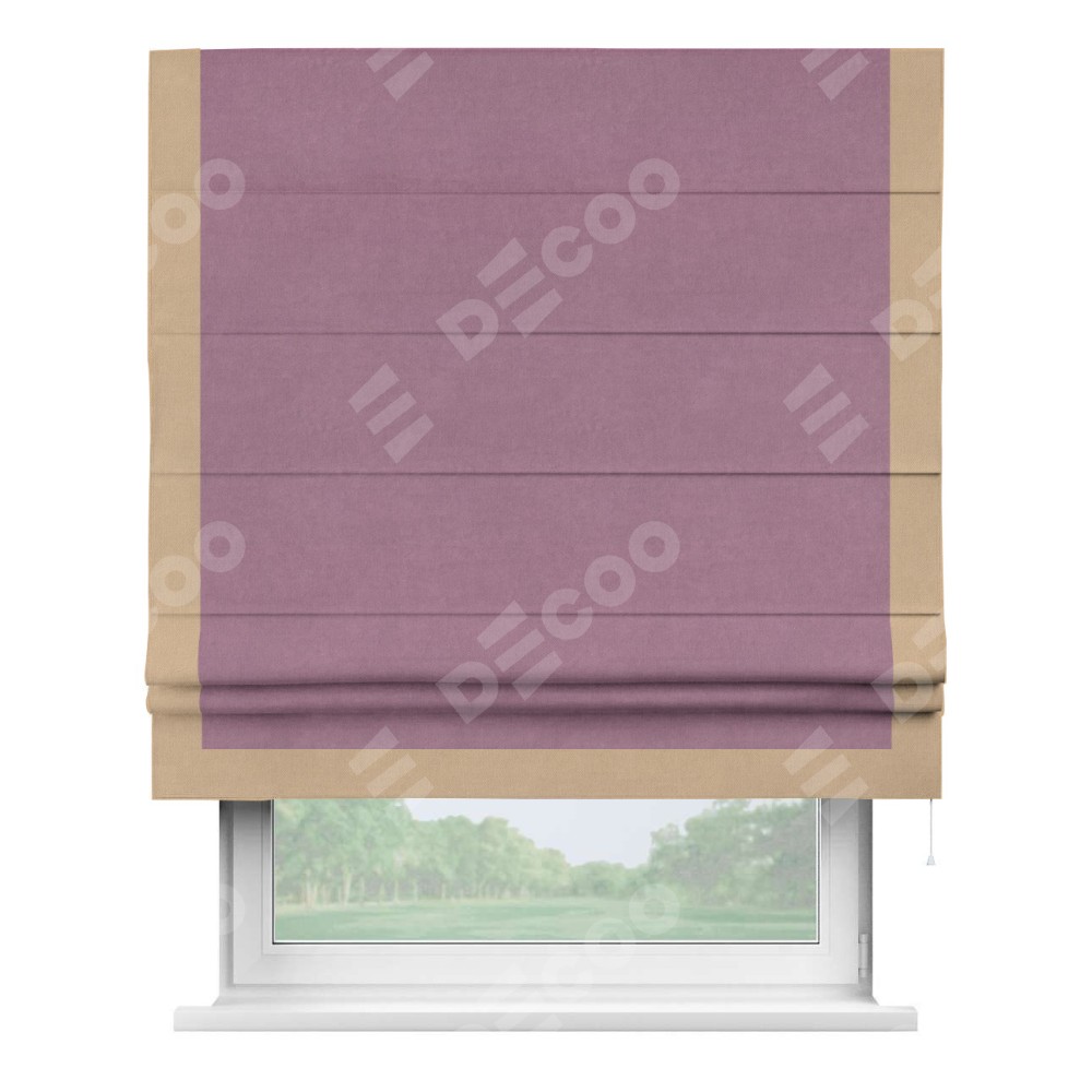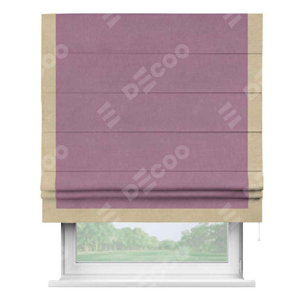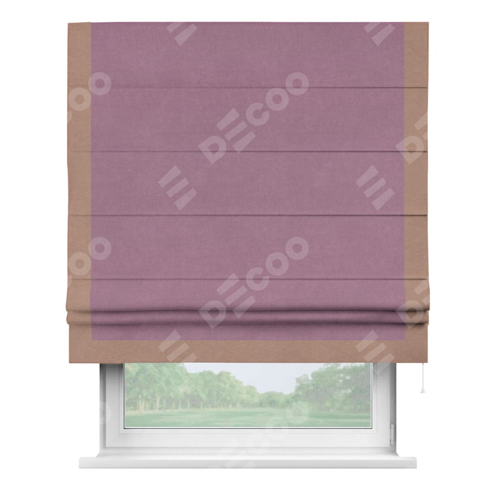 Римская штора «Кортин» с кантом Виктория, для проема, ткань вельвет лиловый