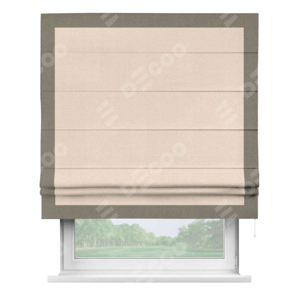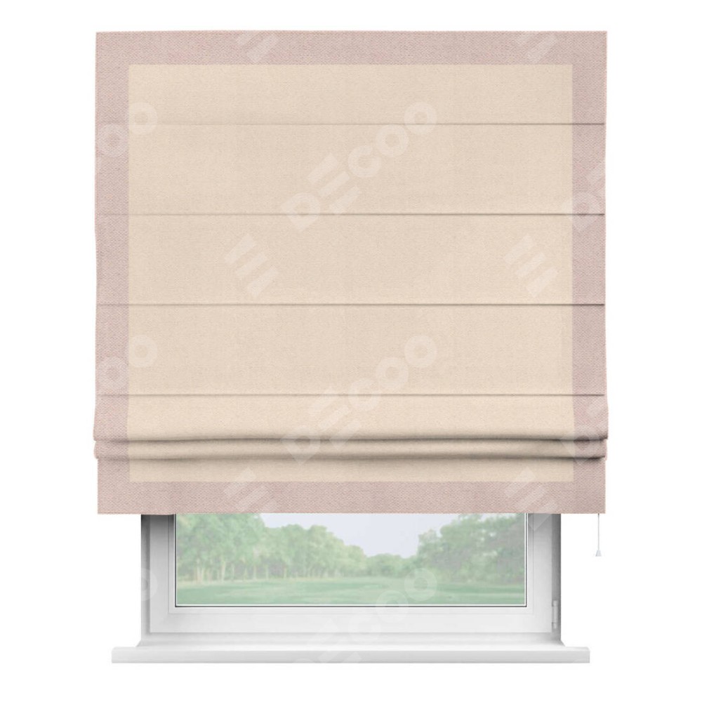 Римская штора производителя «Cortin», используется для проёма, пошита из ткани блэкаут с блеском розовая пудра, артикул 34632. Отделка шторы кантом «Чесс», ткань для канта используется из блэкаута с блеском разной расцветки на выбор. Изнаночная сторона материала черного цвета, что обеспечивает необходимую светонепроницаемость. Имеет универсальный механизм и подходит для монтажа: на потолок, на стену и в нишу.