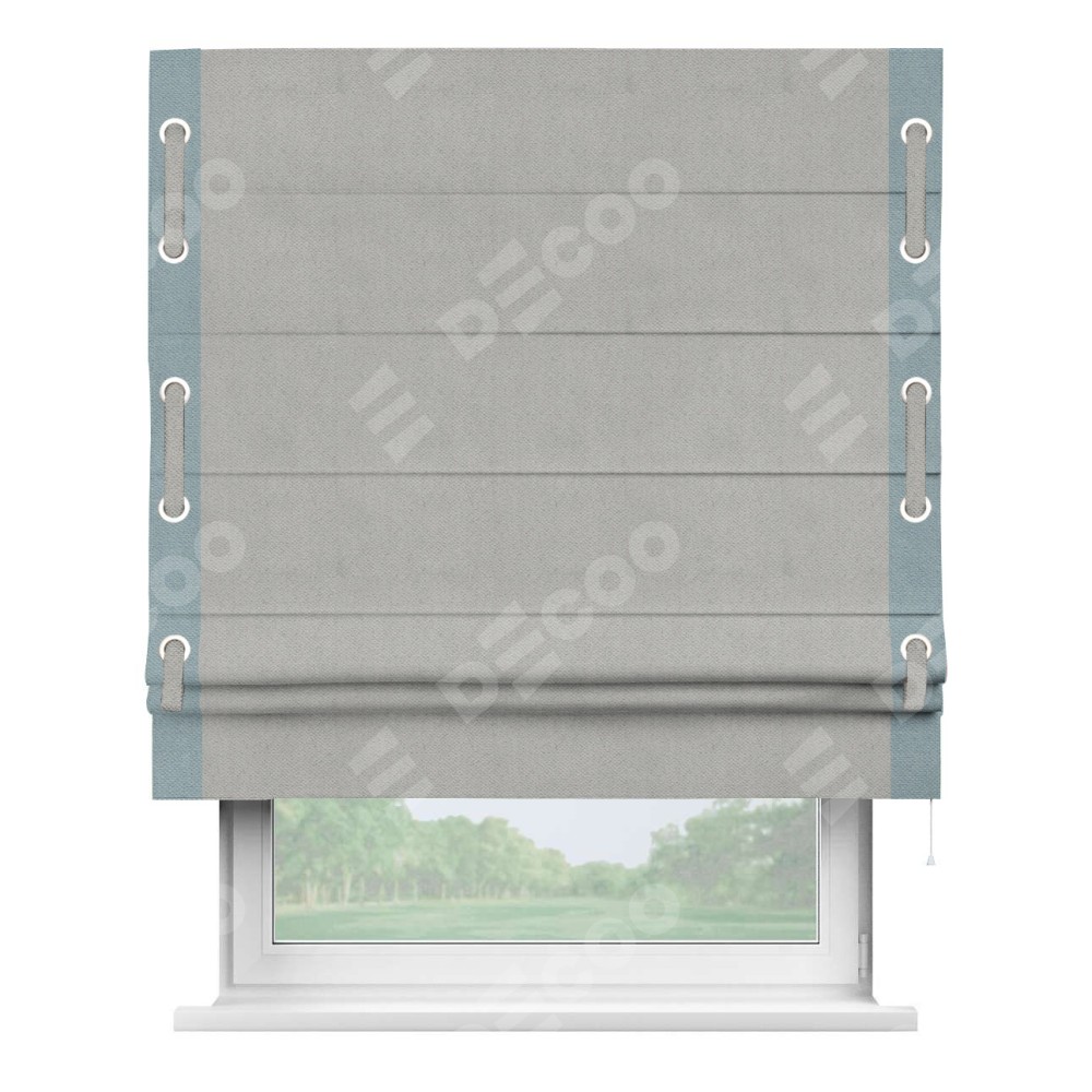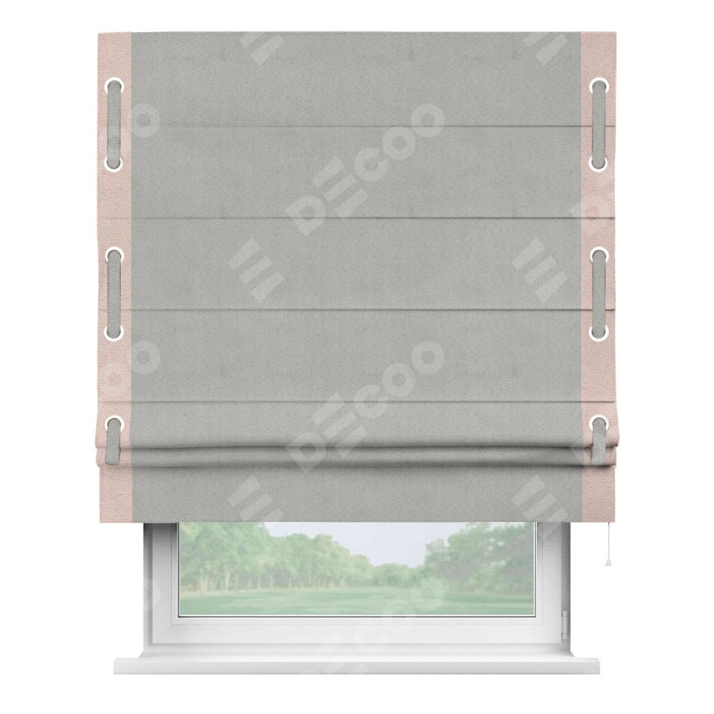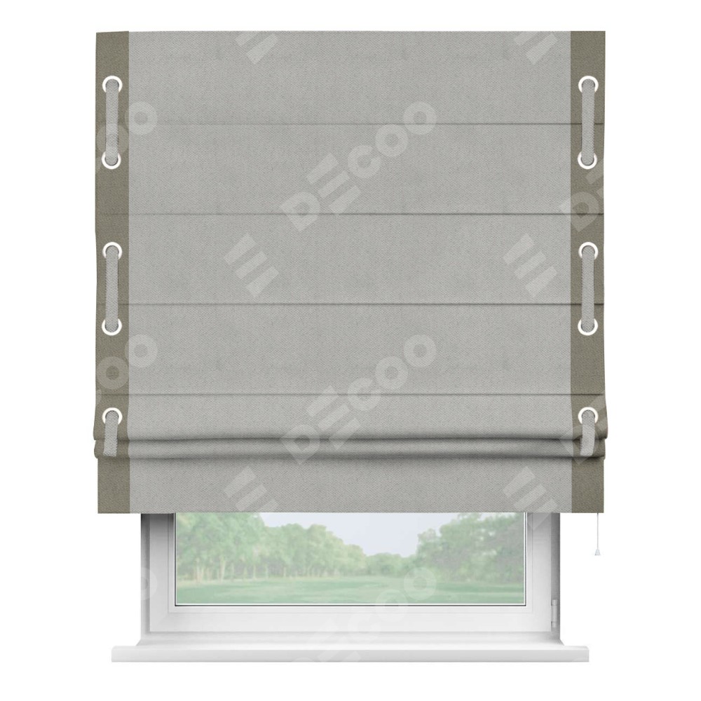 Римская штора «Кортин» с кантом Стрим Дуо (люверсы с пояском), для проема, ткань блэкаут с блеском тёмно-серый