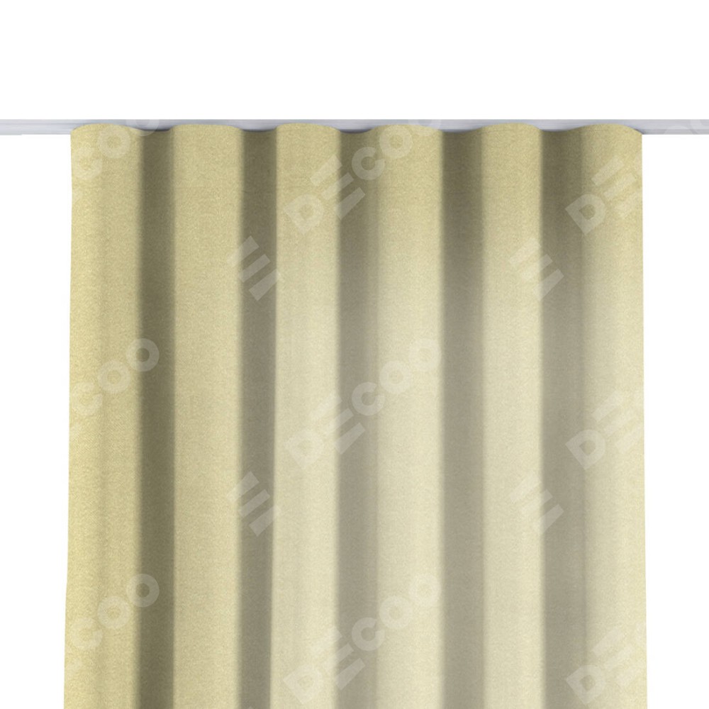 Комплект прямых штор, от производителя «Cortin», пошиты из ткани софт однотонный молочный, артикул ткани 11938. С изнаночной стороны в верхней части штор пристрачивается шторная лента с декоративными складками «Волна». Для создания элегантных складок прямые шторы шьются по стандарту с коэффициентом 1:2 (на 100 см. ширины проёма 200 см. ширины ткани).
