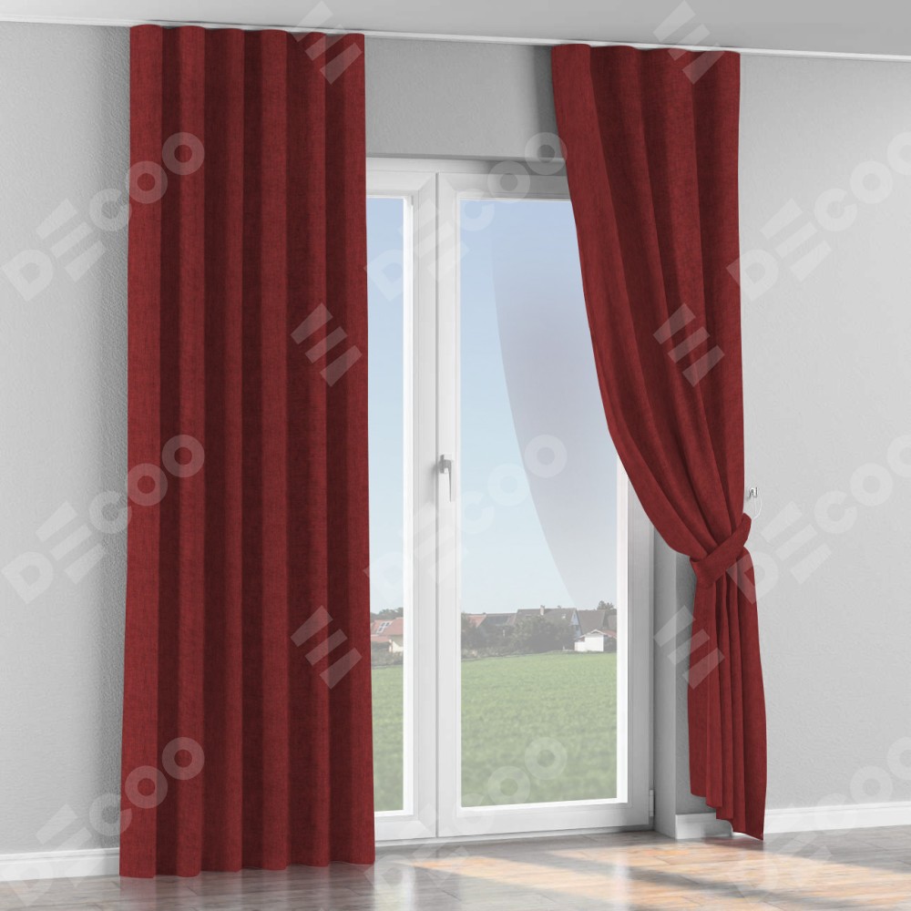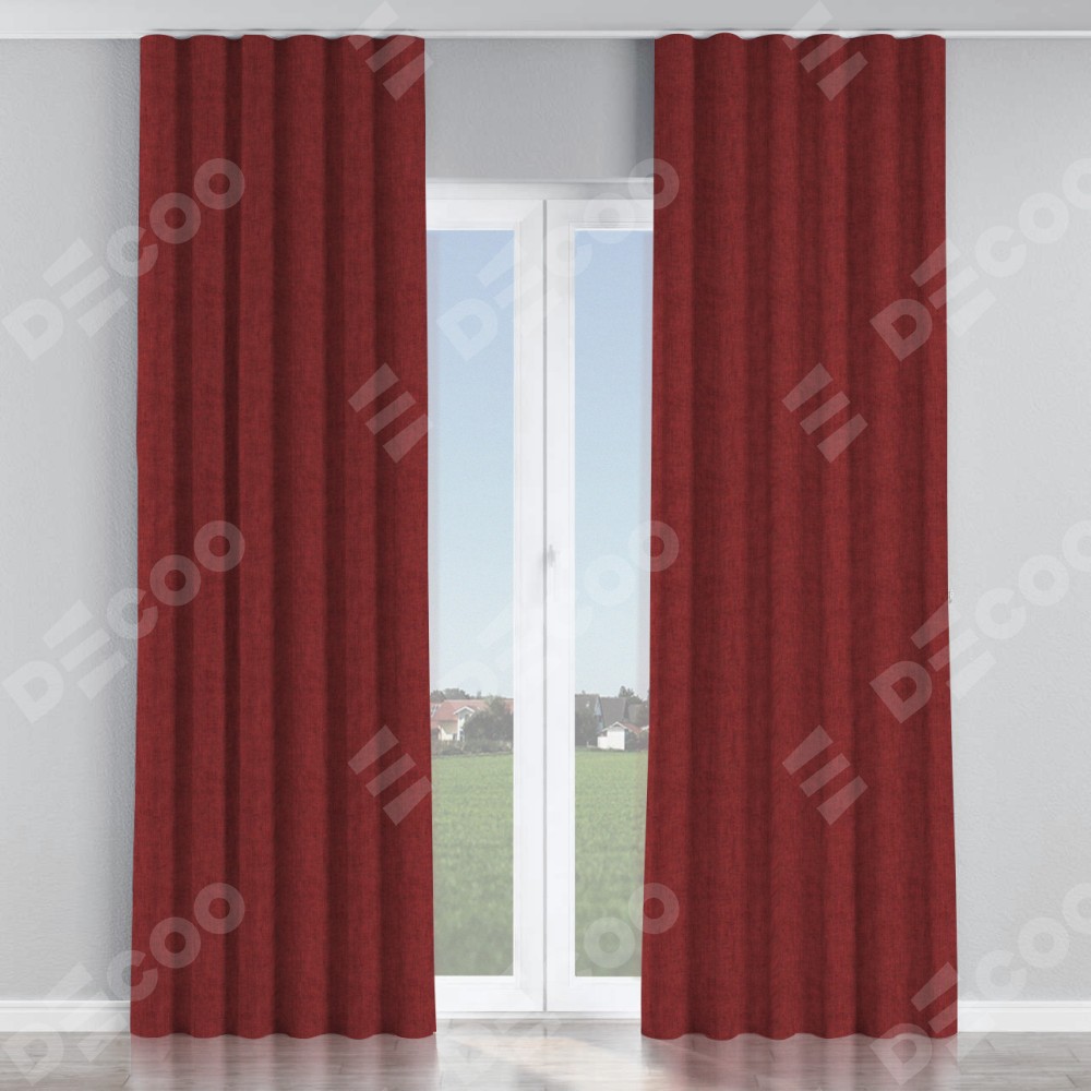 Комплект прямых штор, от производителя «Cortin», пошиты из ткани лён кашемир бордовый, артикул ткани 17213. С изнаночной стороны в верхней части штор пристрачивается шторная лента с декоративными складками «Волна». Для создания элегантных складок прямые шторы шьются по стандарту с коэффициентом 1:2 (на 100 см. ширины проёма 200 см. ширины ткани).