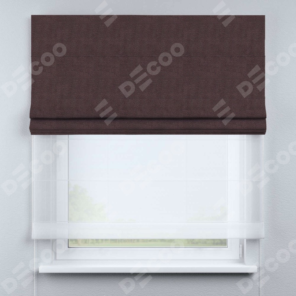 Римская штора день-ночь производителя «Cortin», используется для проёма, пошита из двух полотен, с лицевой стороны cotton блэкаут лиловый артикул 35316, вторая ткань тюль (по стандарту комплектуется тюль белого цвета артикул V-01). Имеет универсальный механизм и подходит для монтажа: на потолок, на стену и в нишу.