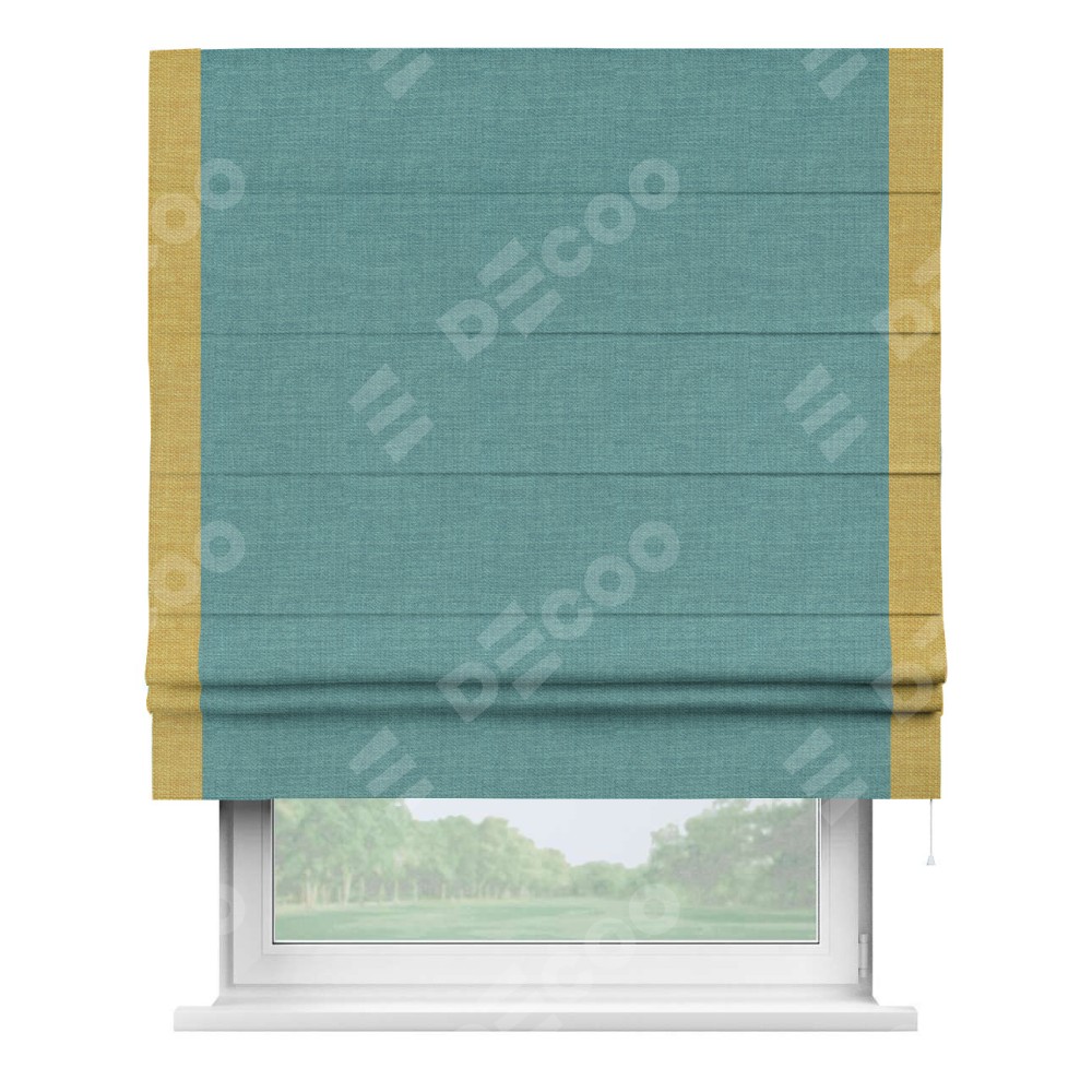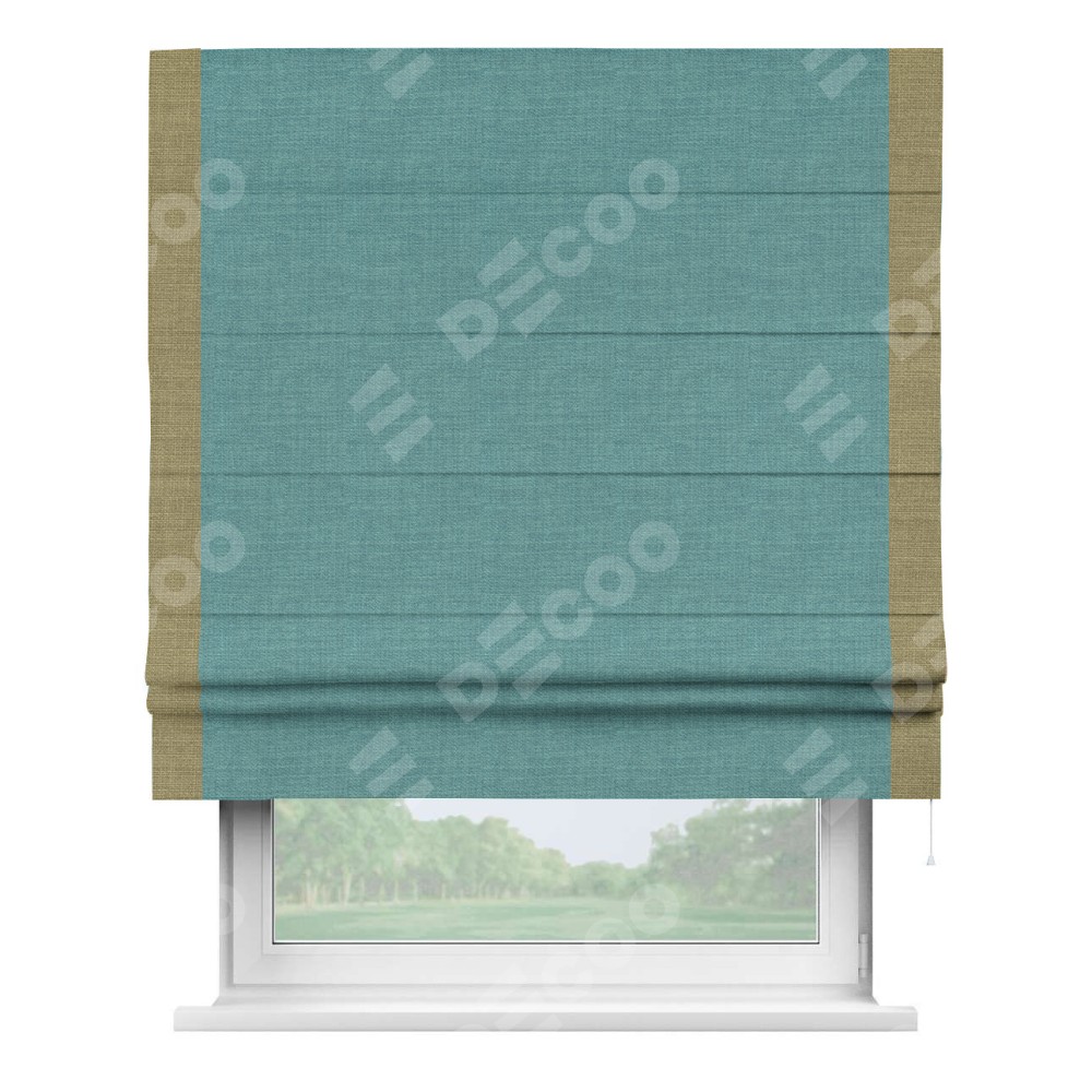 Римская штора «Кортин» с кантом Стрим Дуо, для проема, ткань лён бирюза, ширина 40−60 см