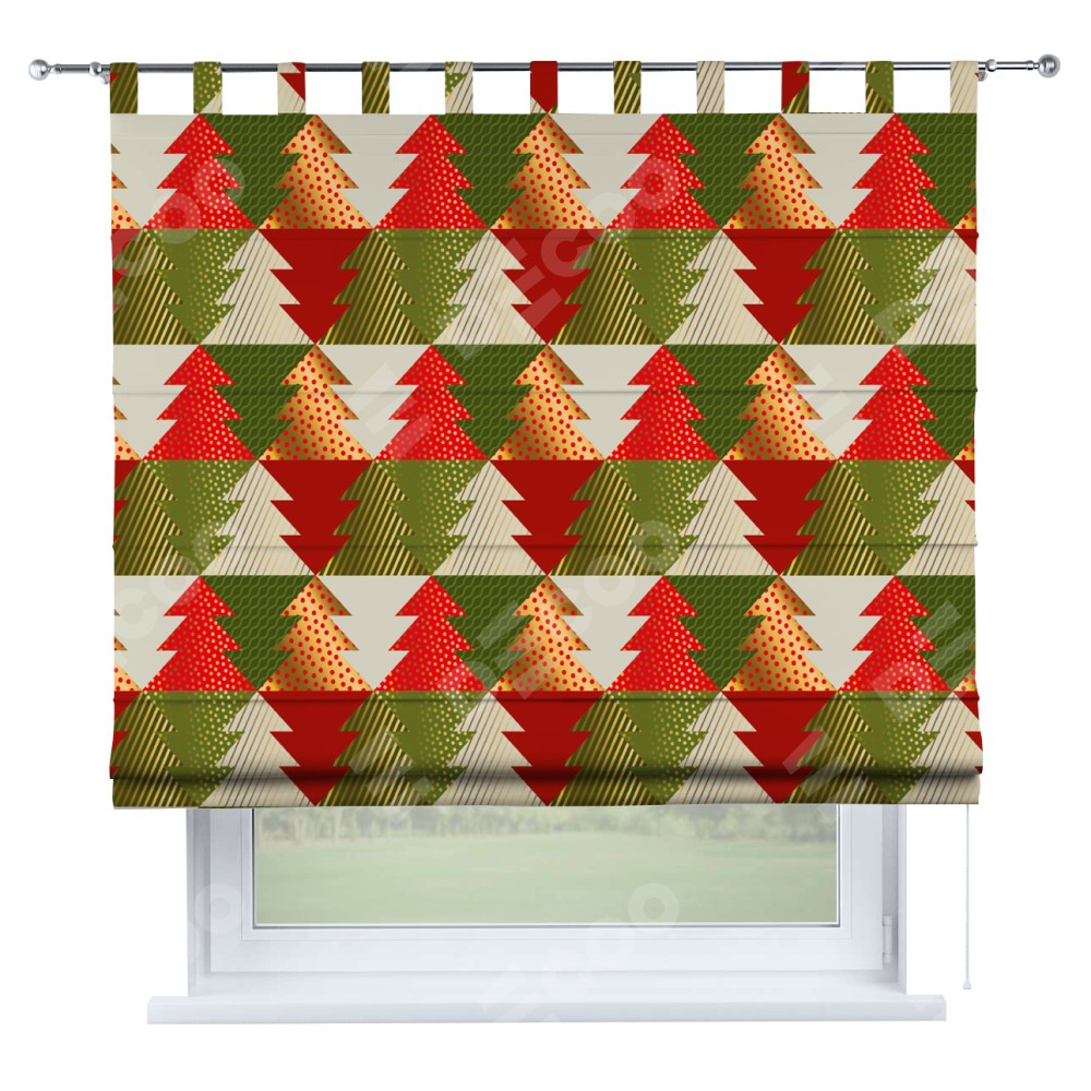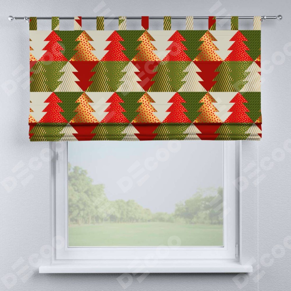 Римская штора производителя «Cortin», используется для проёма, пошита из ткани блэкаут с нанесением сублимационной печати «Новогоднее украшение». Данная модель пошита на петлях, комплектуется на выбор круглым карнизом и подходит для монтажа на стену. Римская штора на петлях имеет простую систему регулировки высоты, отличительным преимуществом данной модели является простой способ монтажа. Достаточно повесить ее на трубу и штора готова!