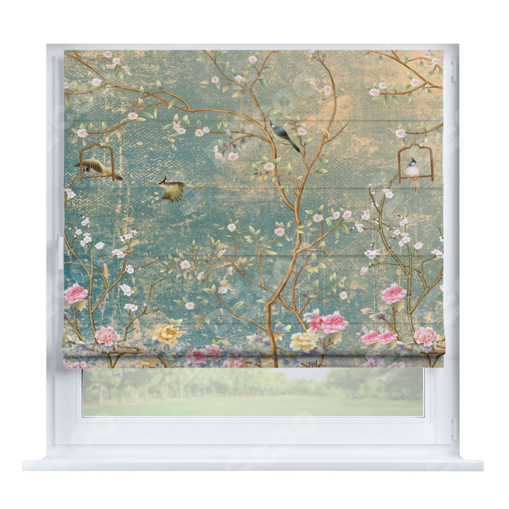 Римская штора производителя «Cortin», устанавливается на створку окна, пошита из ткани блэкаут с нанесением сублимационной печати «Цветущий сад». Штора шьётся по индивидуальным размерам, для данного типа римской шторы возможная ширина от 35 до 150 см., высота до 250 см.