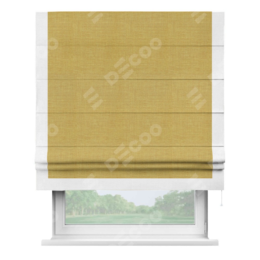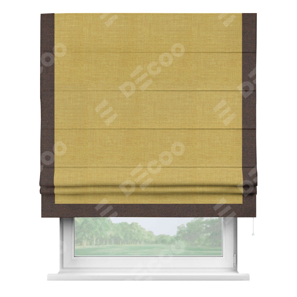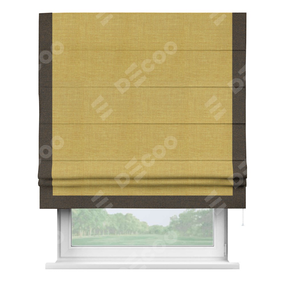 Римская штора «Кортин» с кантом Виктория, для проема, ткань лён горчичный