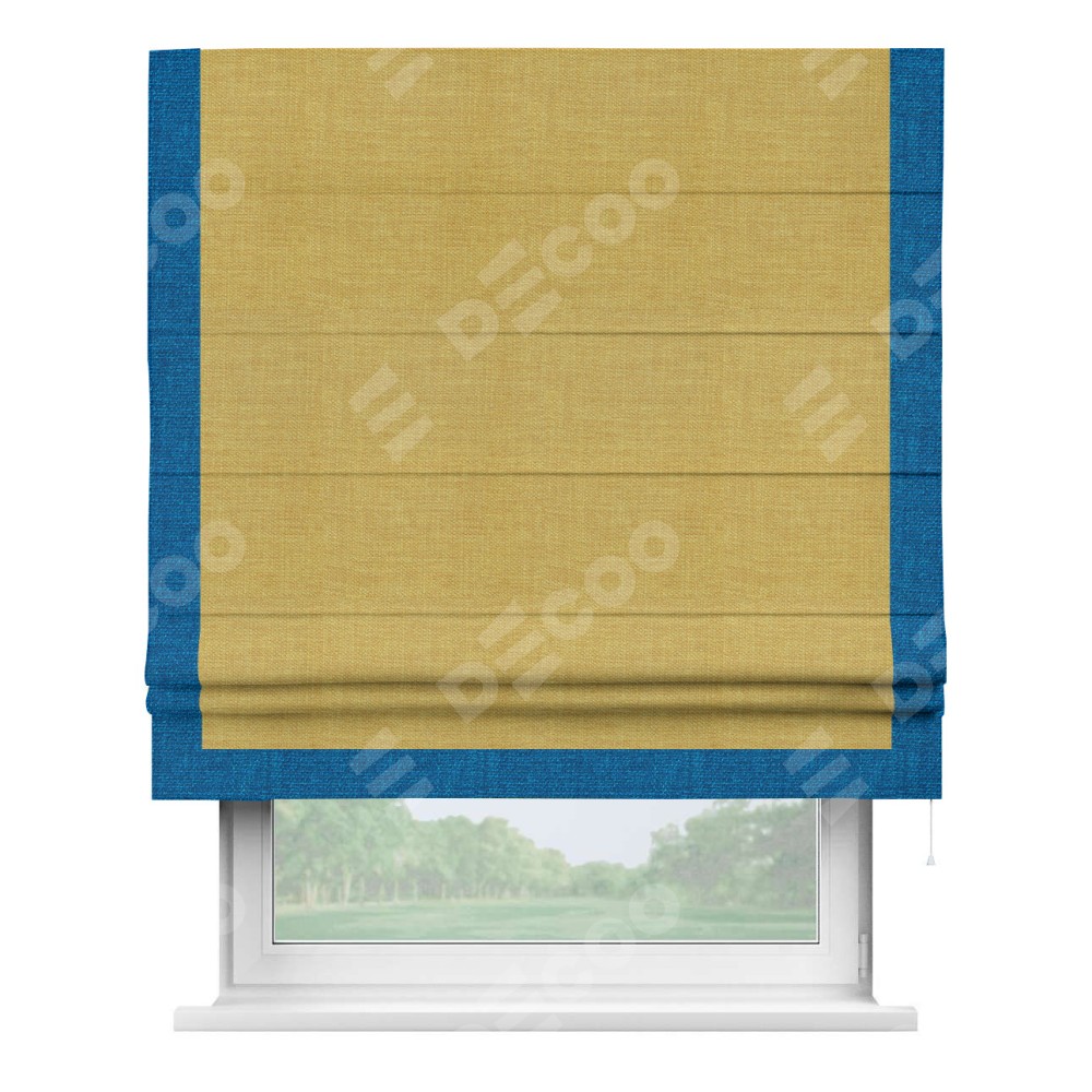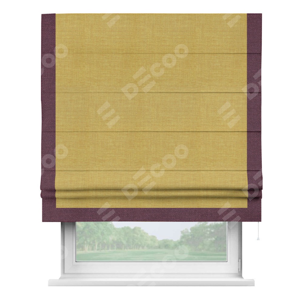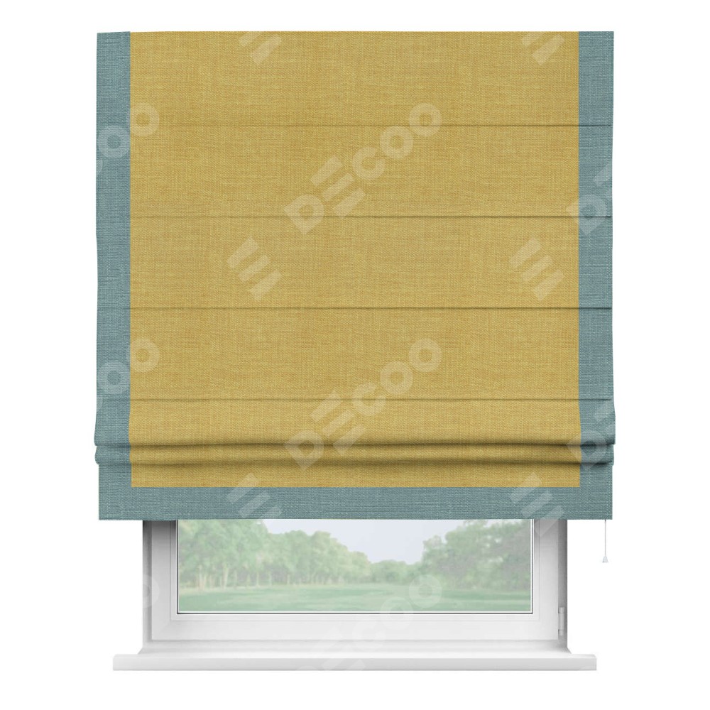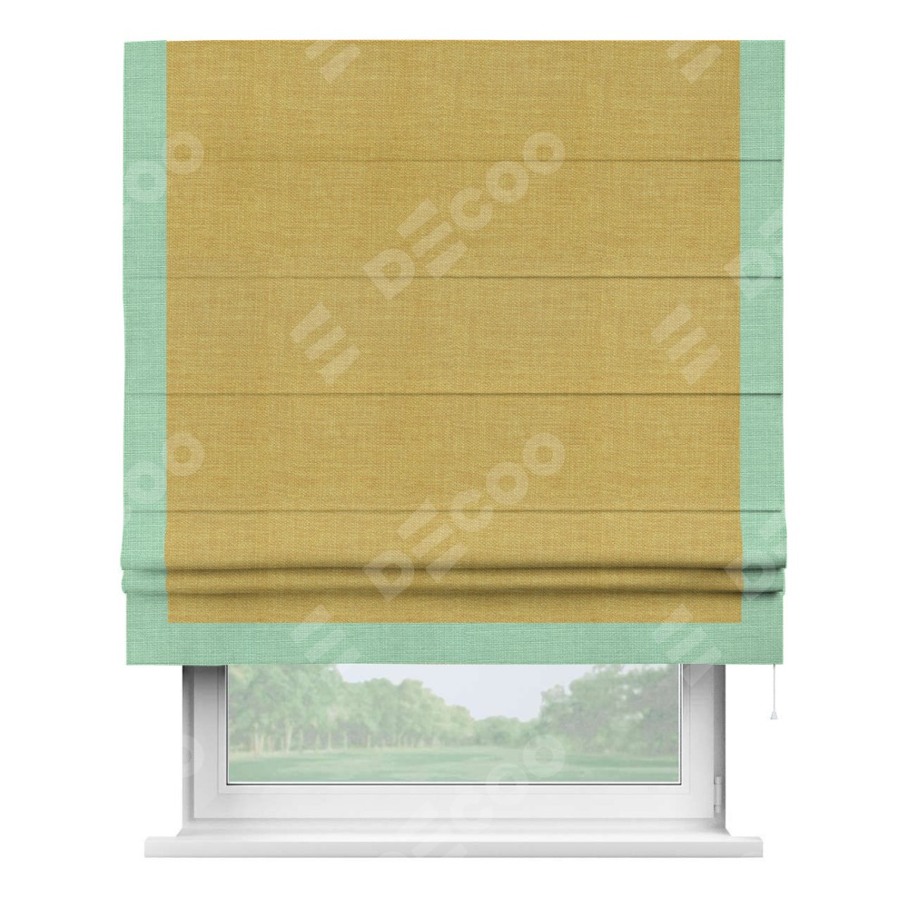 Римская штора «Кортин» с кантом Виктория, для проема, ткань лён горчичный