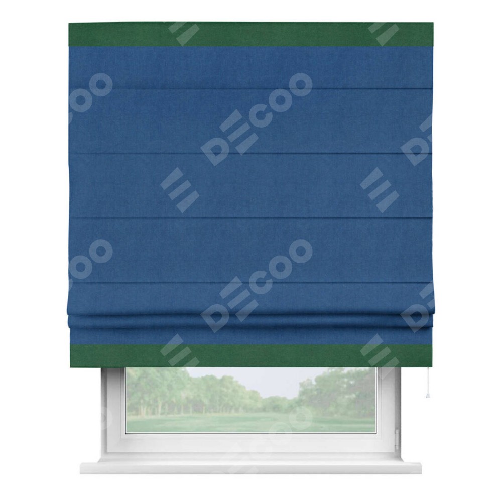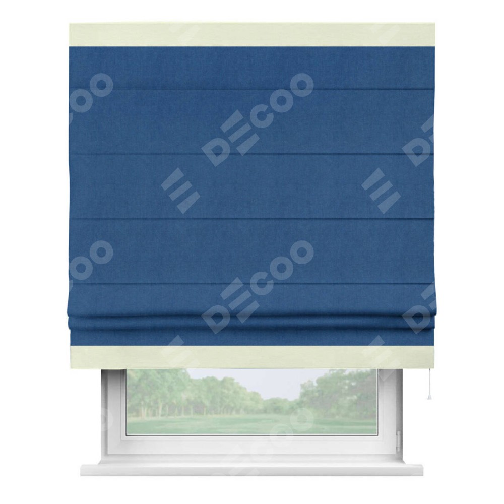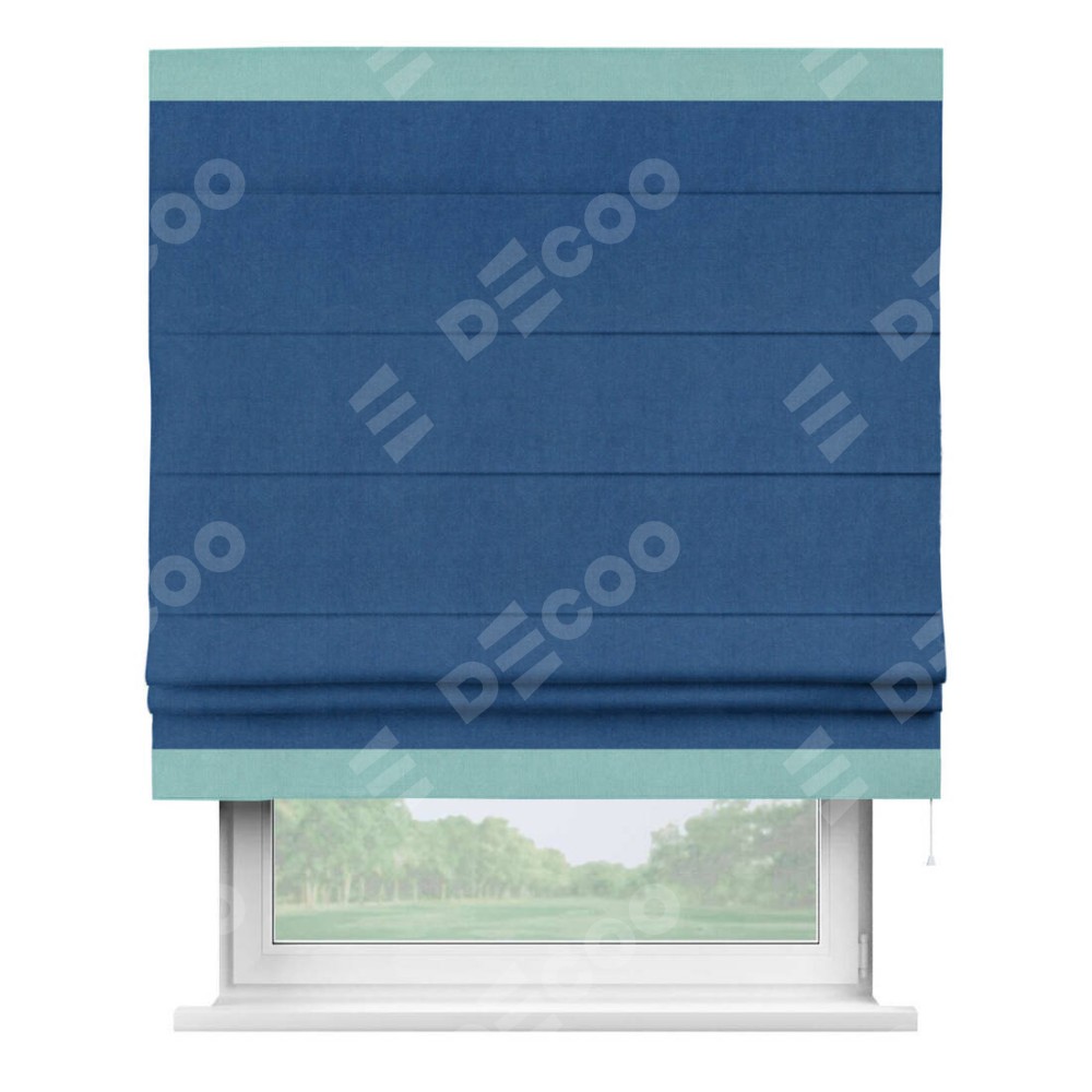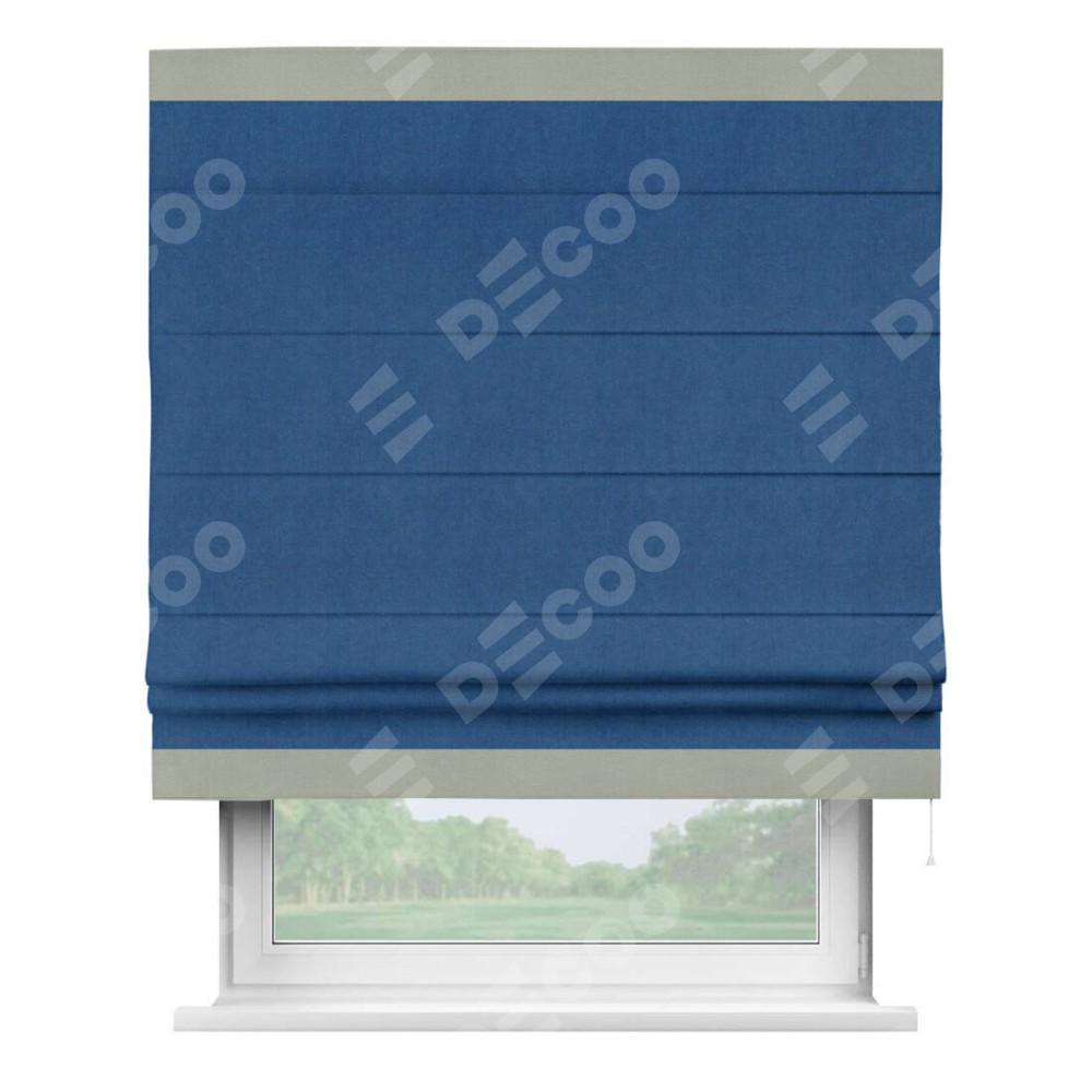 Римская штора «Кортин» с кантом Горизонт, для проема, ткань вельвет синий