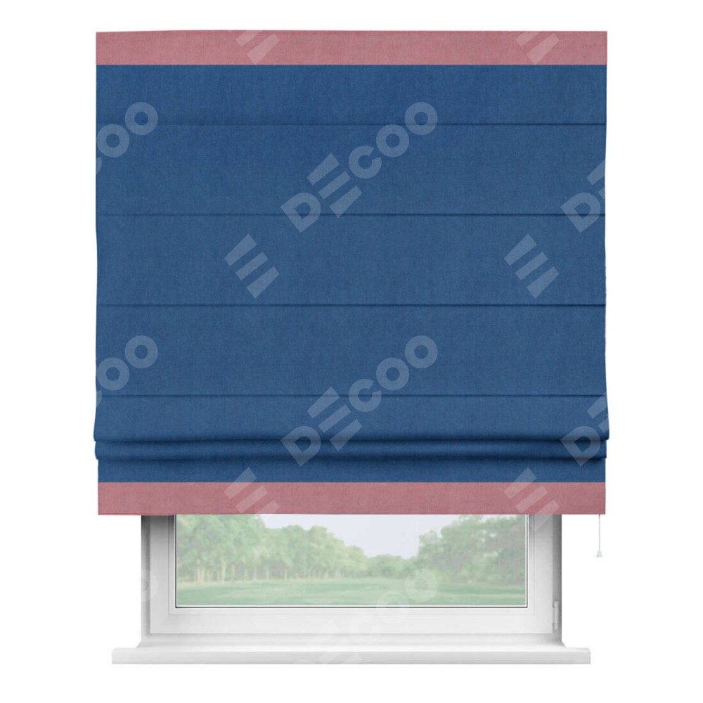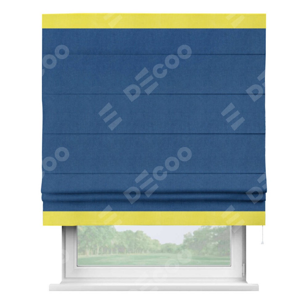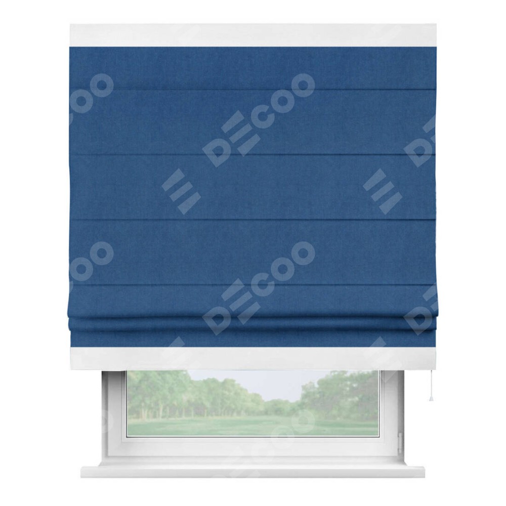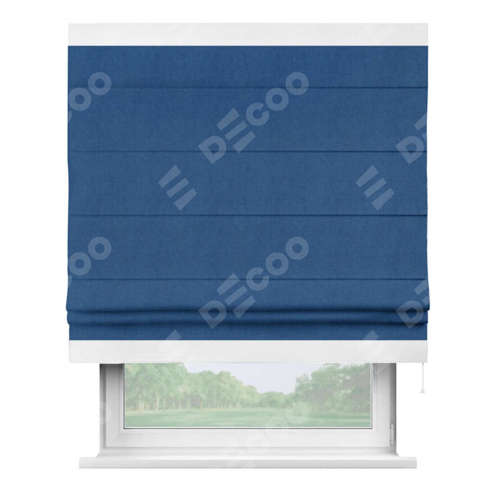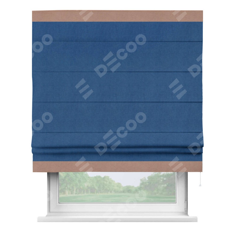 Римская штора «Кортин» с кантом Горизонт, для проема, ткань вельвет синий