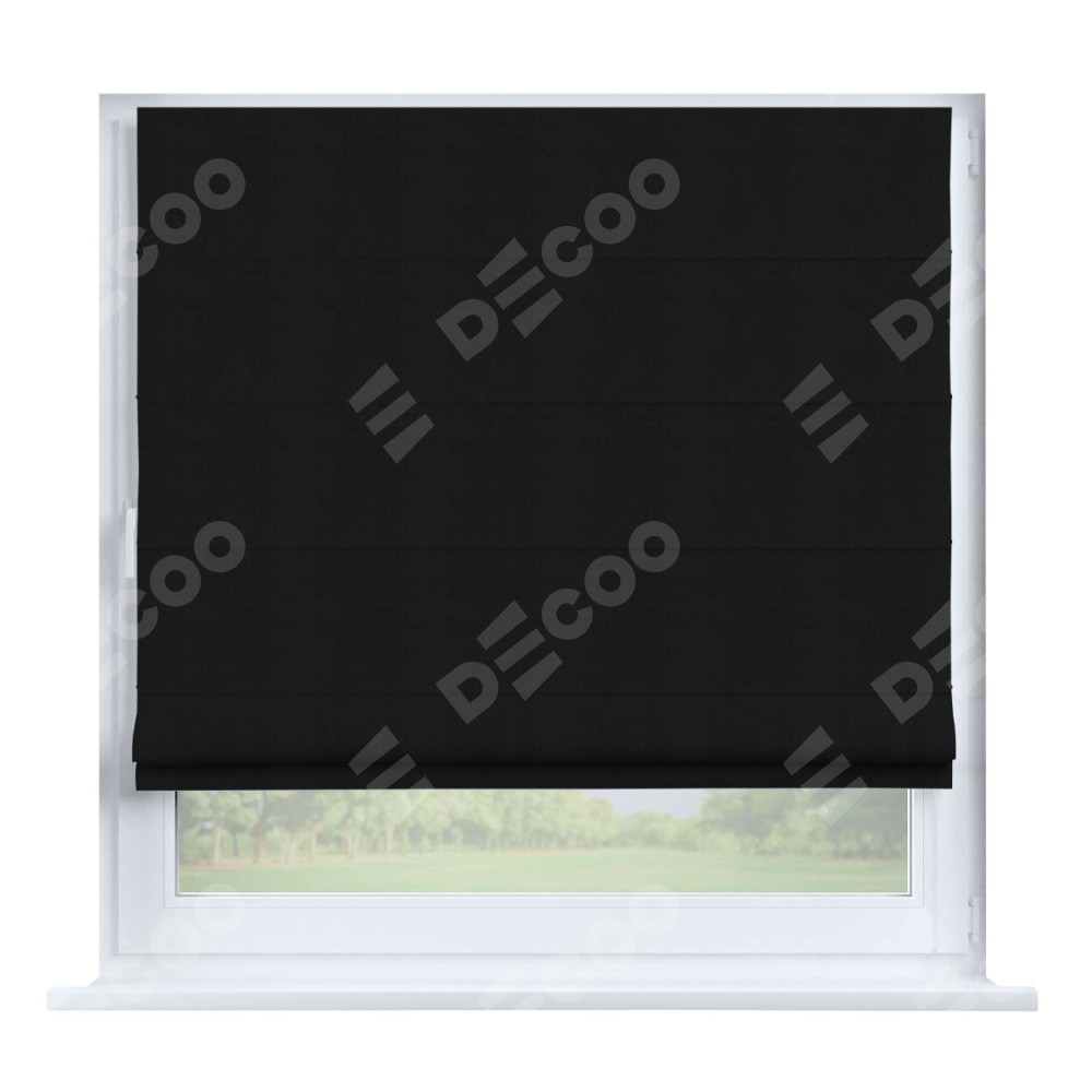 Римская штора производителя «Cortin», устанавливается на створку окна, пошита из ткани блэкаут однотонный черный, артикул 79904. Штора шьётся по индивидуальным размерам, для данного типа римской шторы возможная ширина от 35 до 150 см., высота до 250 см.
