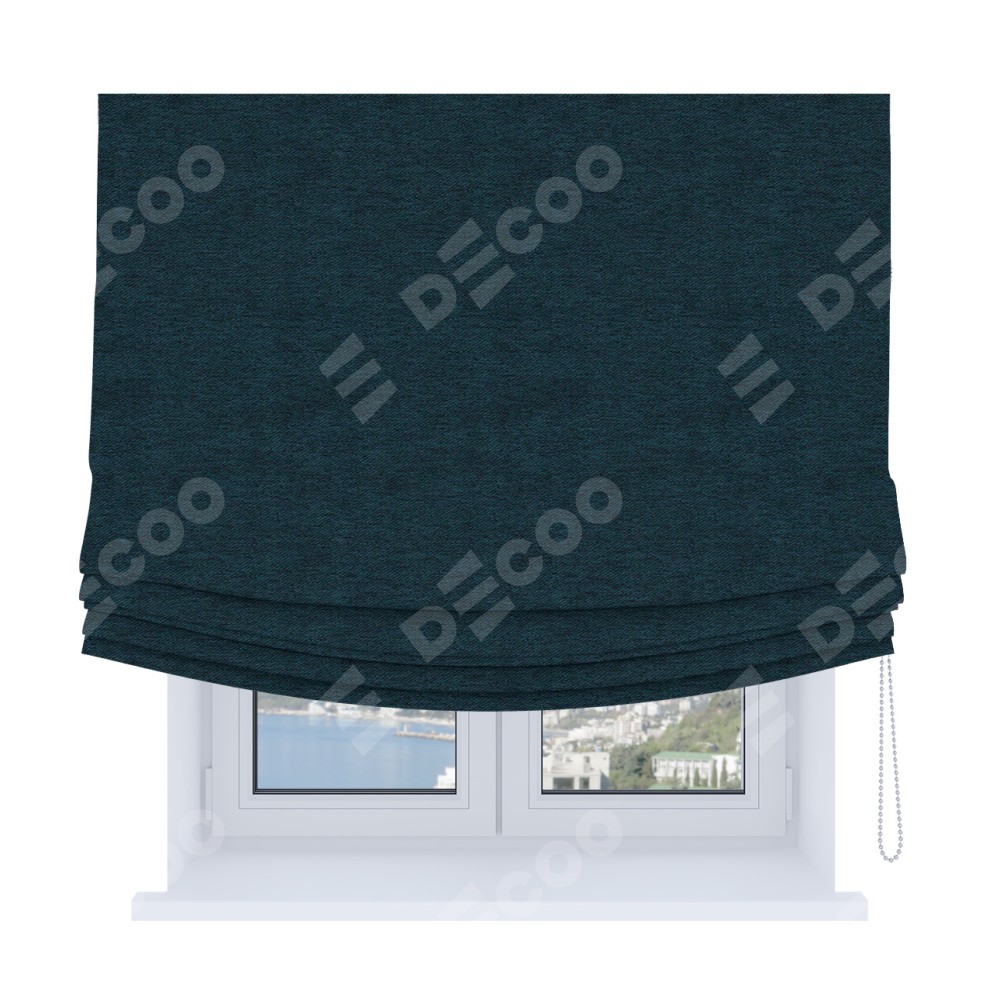 Римская штора Soft с мягкими складками, ткань твид блэкаут глубокий синий