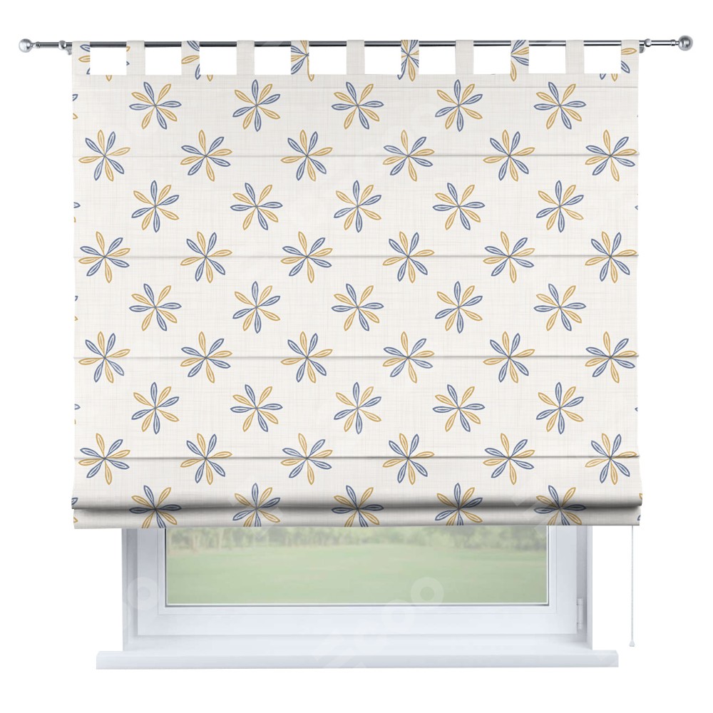 Римская штора производителя «Cortin», используется для проёма, пошита из ткани блэкаут с нанесением сублимационной печати «Ромашки кантри». Данная модель пошита на петлях, комплектуется на выбор круглым карнизом и подходит для монтажа на стену. Римская штора на петлях имеет простую систему регулировки высоты, отличительным преимуществом данной модели является простой способ монтажа. Достаточно повесить ее на трубу и штора готова!