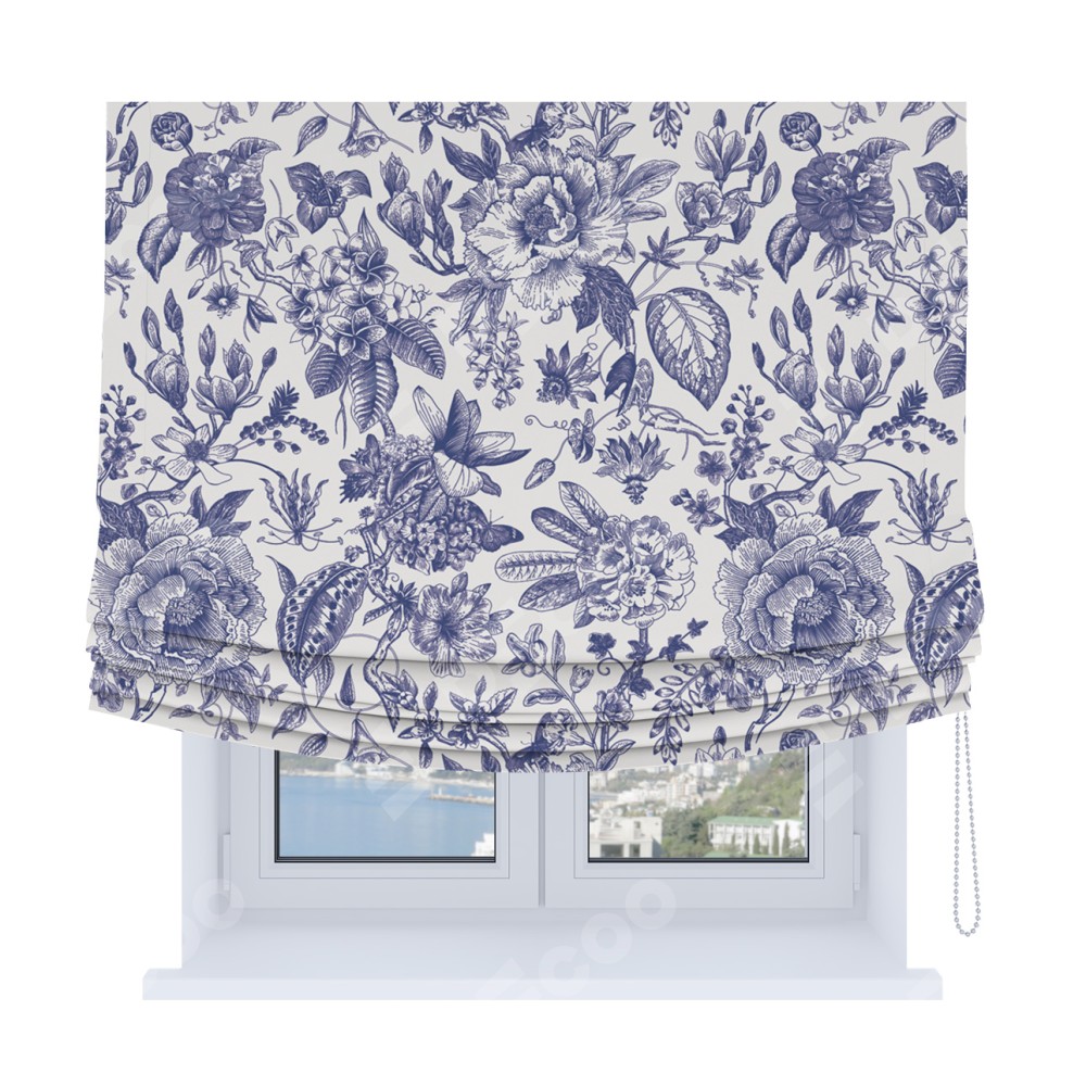 Римская штора Soft производителя «Cortin», используется для проёма, пошита из ткани блэкаут с нанесением сублимационной печати «Прованс в синем». Имеет универсальный механизм и подходит для монтажа: на потолок, на стену и в нишу. В отличие от стандартных римских штор, римская штора Soft не имеет горизонтальных вставок и нижнего отвеса. Это позволяет ткани произвольно драпироваться в свободные мягкие складки.