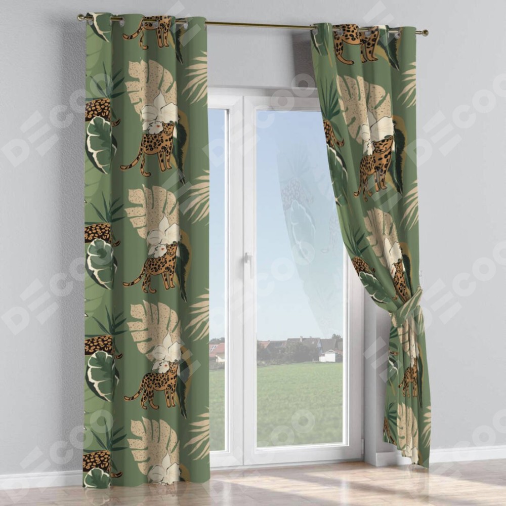 Комплект прямых штор, от производителя «Cortin», пошиты из ткани блэкаут с нанесением сублимационной печати «В тропическом лесу». Данная модель пошита на люверсах, комплектуется на выбор круглым карнизом и подходит для монтажа на стену или потолок. Прямые шторы на люверсах шьются по стандарту с коэффициентом 1/2 (на 100 см. ширины проёма 200 см. ширины ткани), отличительным преимуществом данной модели является простой способ монтажа. Достаточно повесить ее на трубу и штора готова!