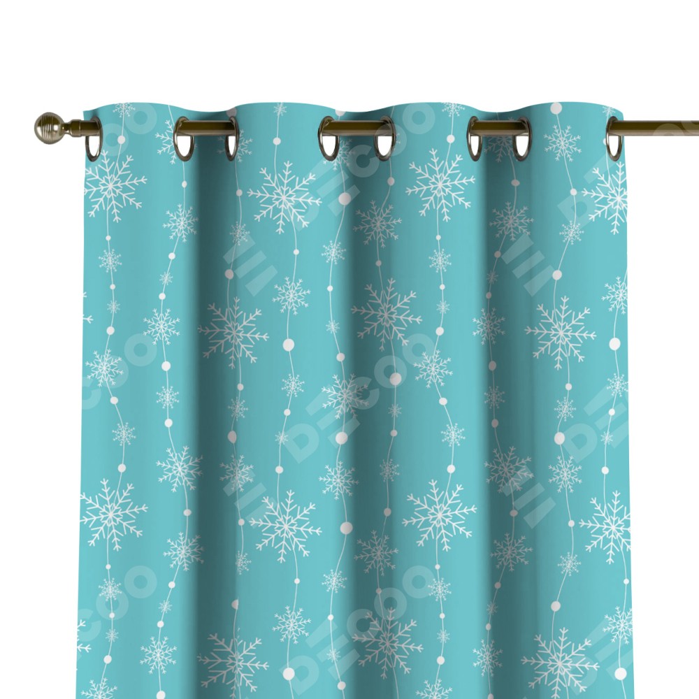 Комплект прямых штор, от производителя «Cortin», пошиты из ткани блэкаут с нанесением сублимационной печати «Гирлянда из снежинок». Данная модель пошита на люверсах, комплектуется на выбор круглым карнизом и подходит для монтажа на стену или потолок. Прямые шторы на люверсах шьются по стандарту с коэффициентом 1/2 (на 100 см. ширины проёма 200 см. ширины ткани), отличительным преимуществом данной модели является простой способ монтажа. Достаточно повесить ее на трубу и штора готова!